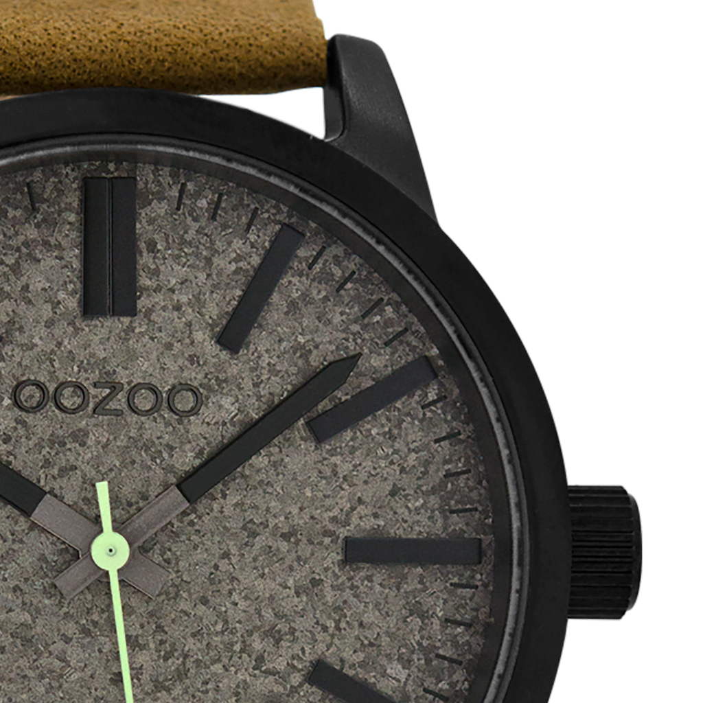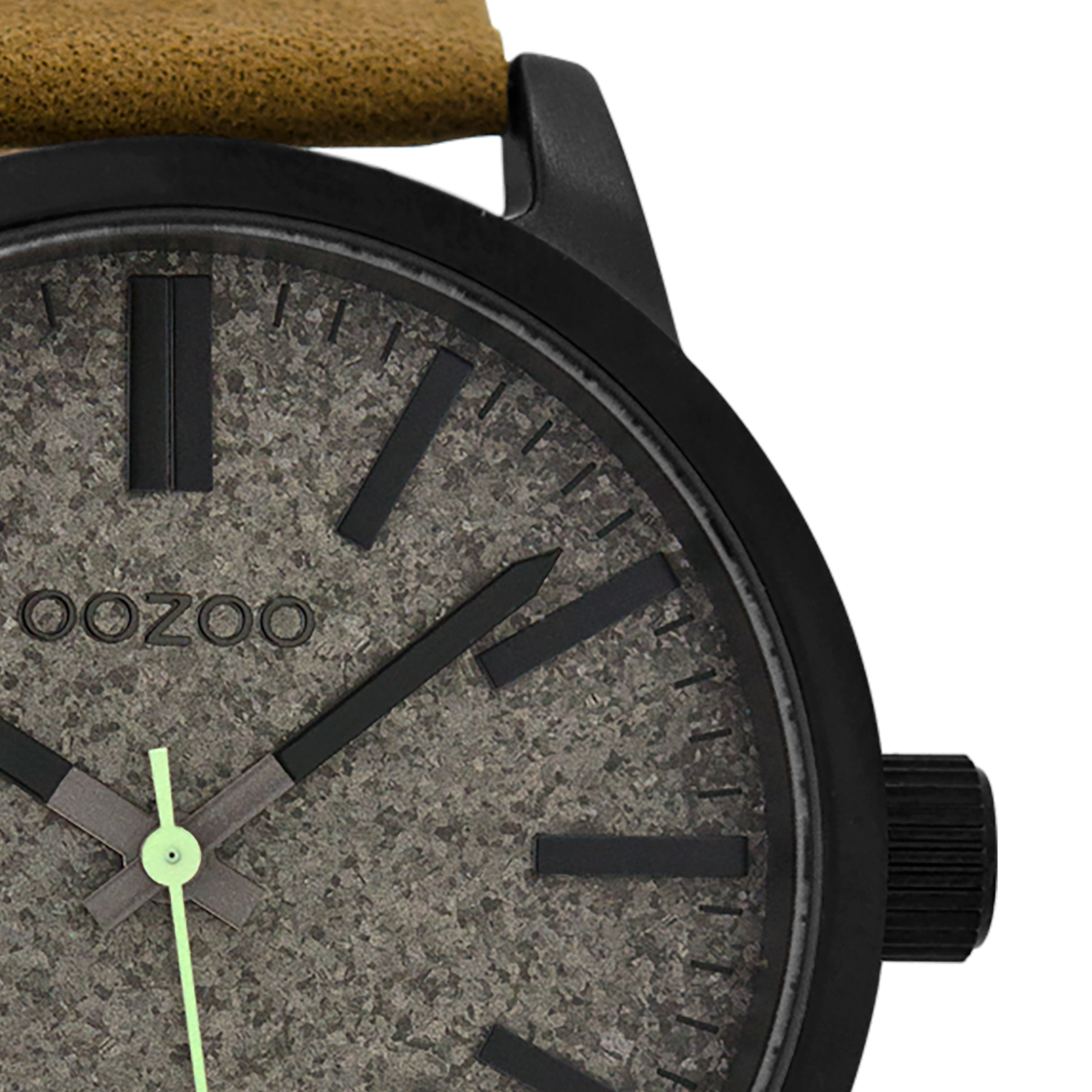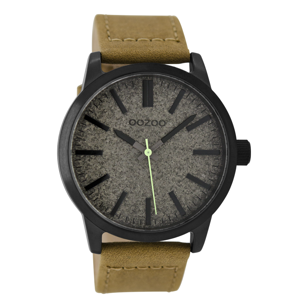 Stand out with this beautiful round gents design from the trendy OOZOO Timepieces collection. The C9067 has a camel leather strap and 43 mm black metal watch case. You are making quite the fashion statement with this black grit dial, black stripes digits and black/grey hands. This essential watch for your wardrobe has a mineral glass, stainless steel backplate and is nickel safe. This watch has a 2 Japanese movement and is covered by a 2 year warranty (see section 3 of our Refund, shipping & warranty policy).