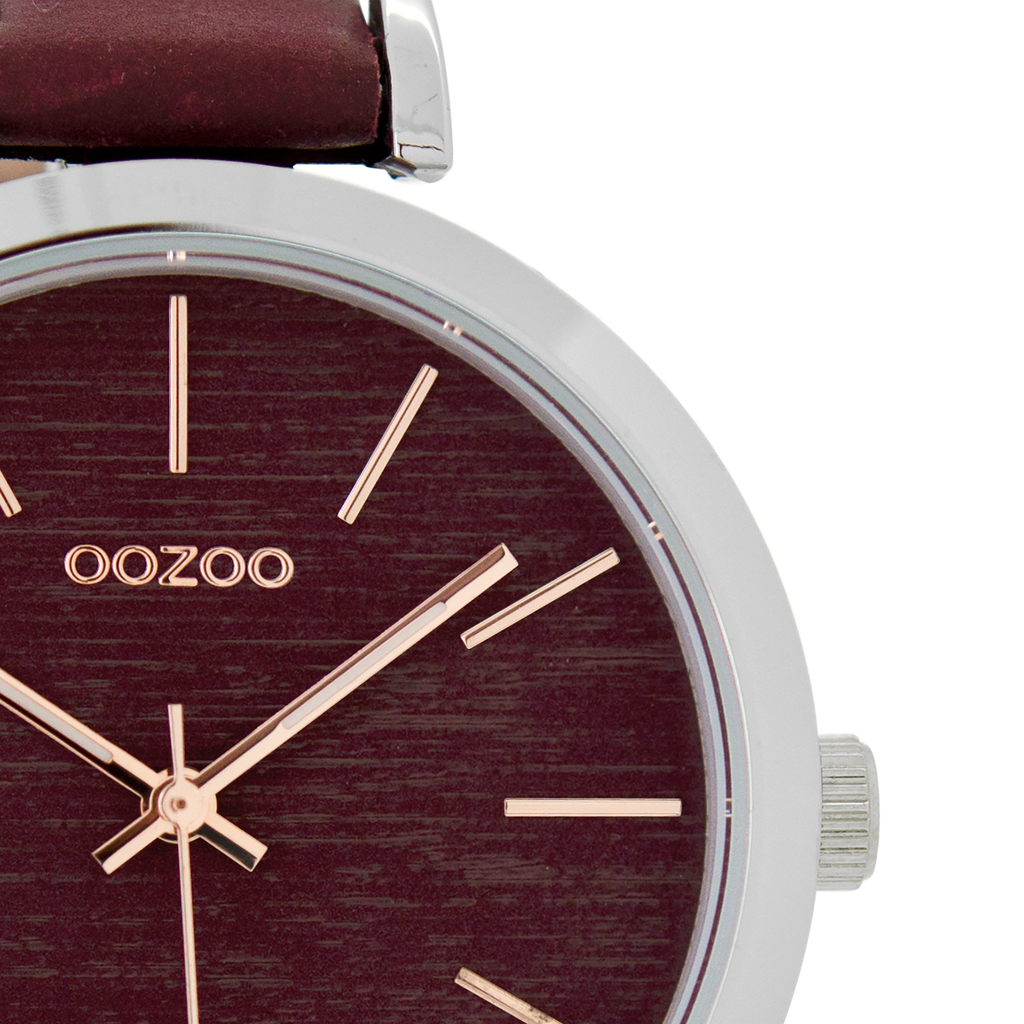 Silver coloured OOZOO watch with burgundy leather strap - C9137