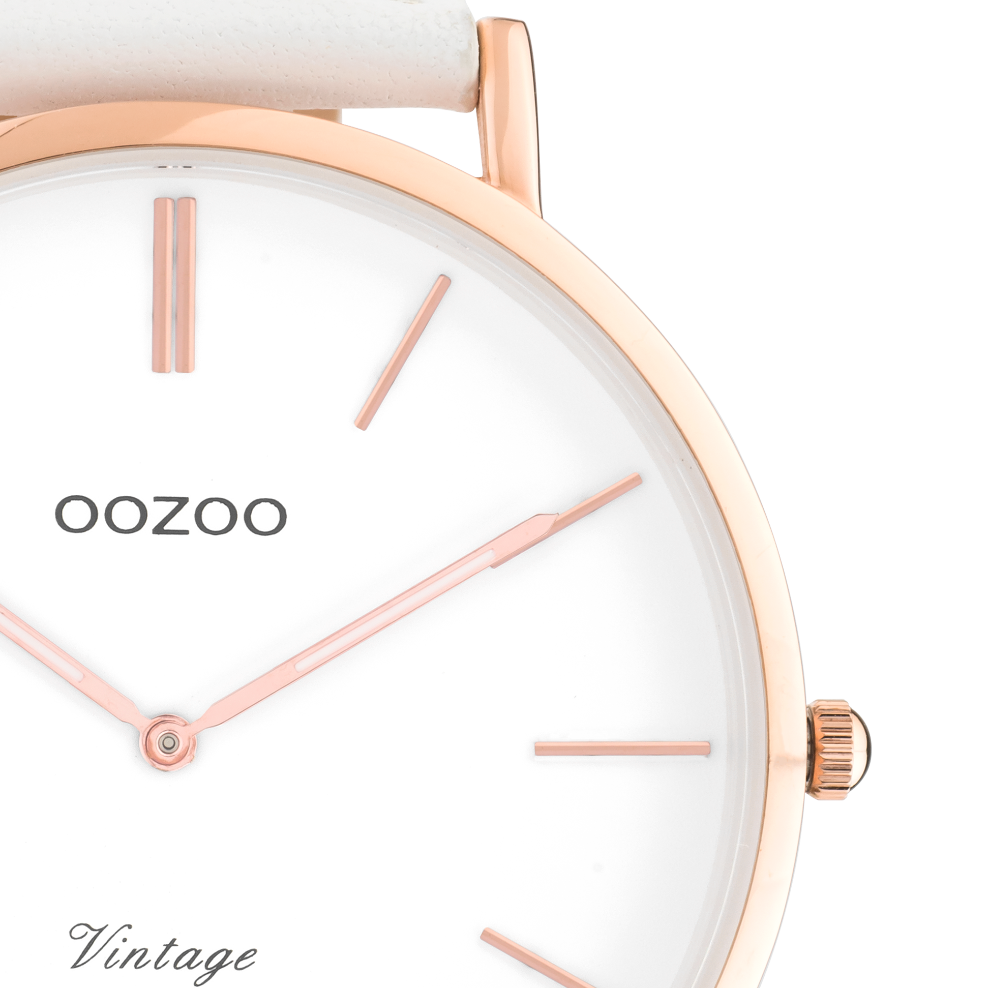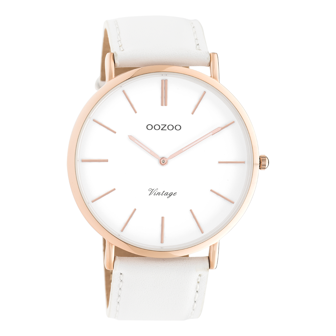 Rose gold coloured OOZOO watch with white leather strap - C9314