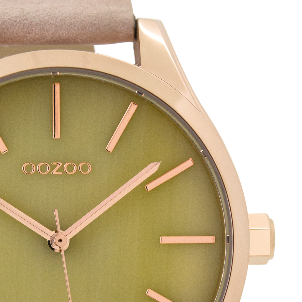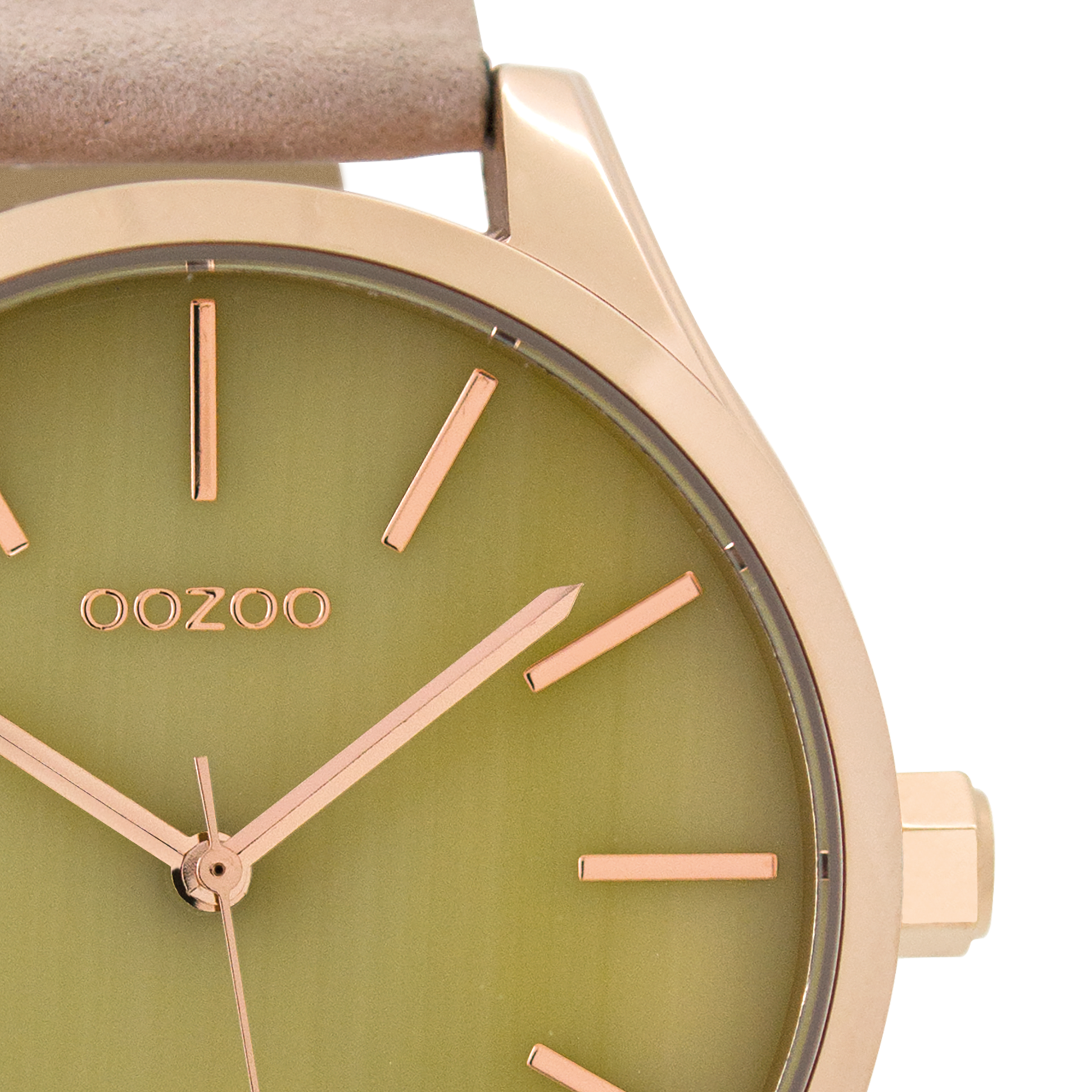 Silver coloured OOZOO watch with pink grey leather strap - C9502