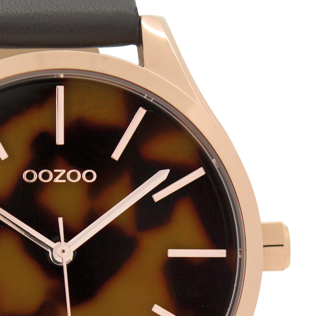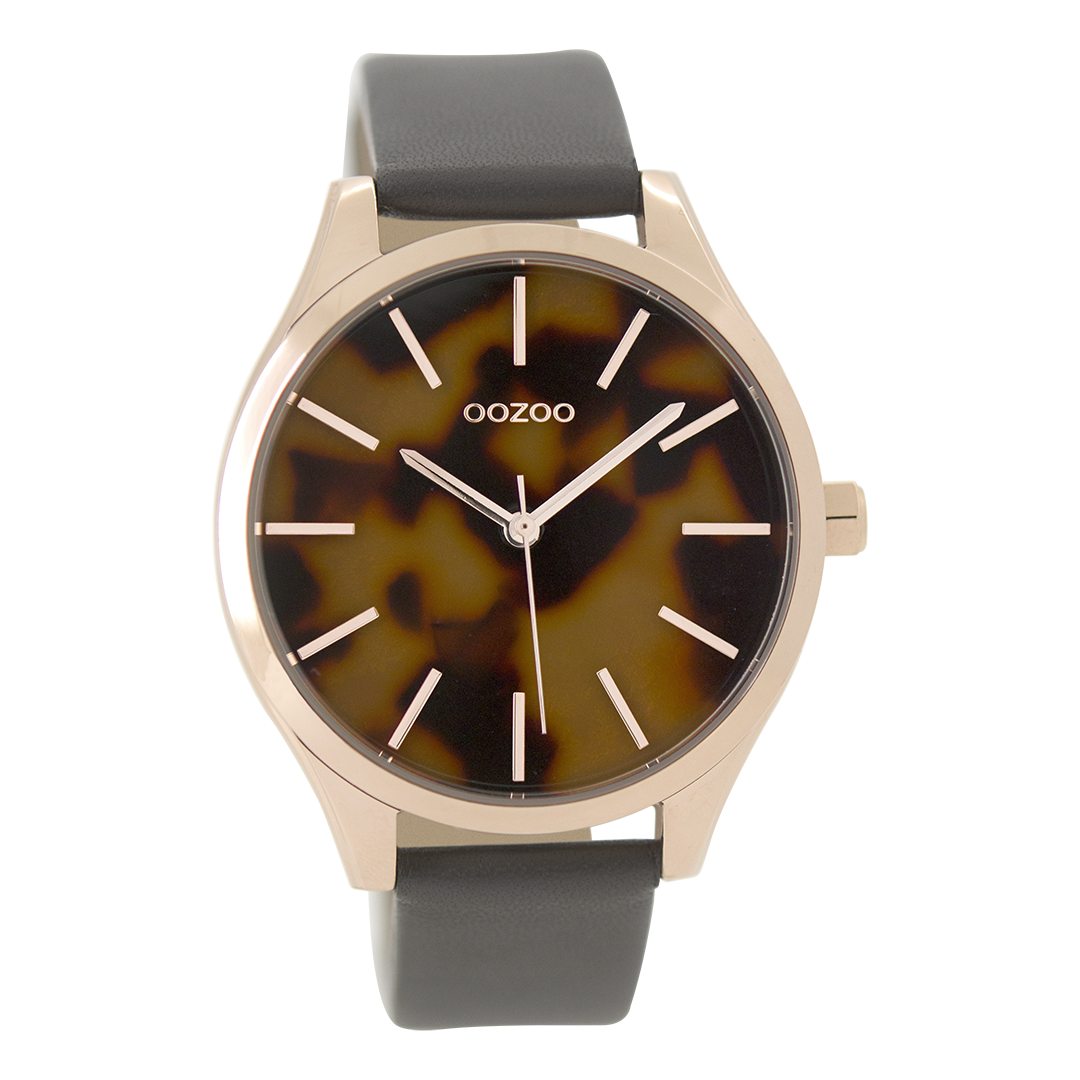 Rose gold coloured OOZOO watch with elephant grey leather strap - C9504