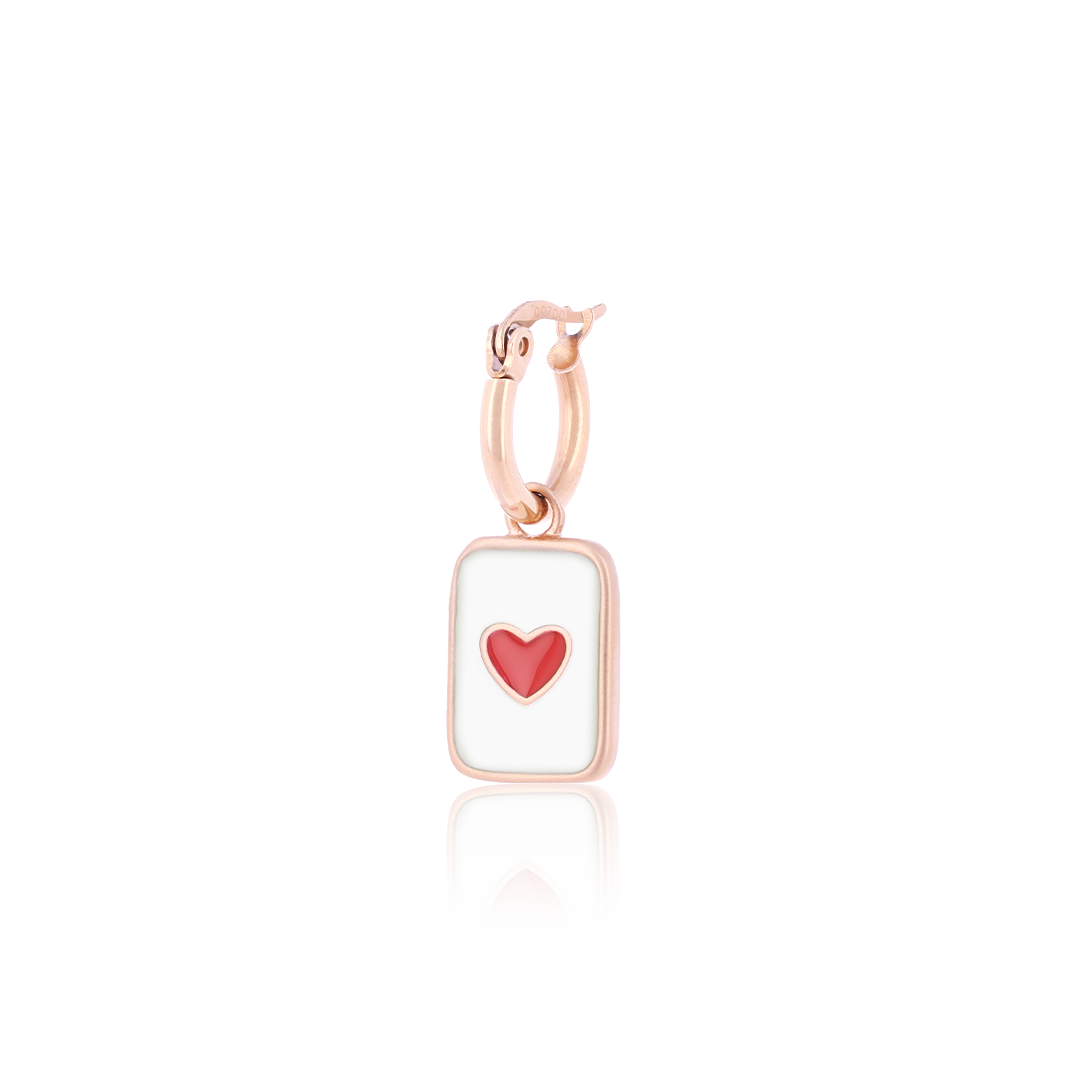 Rose gold coloured/red hoop earring with a heart plate