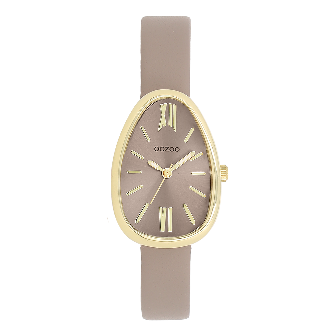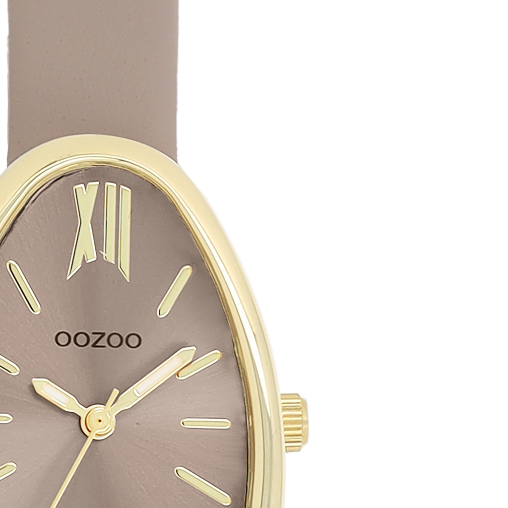 Gold coloured OOZOO watch with taupe leather strap - C11637