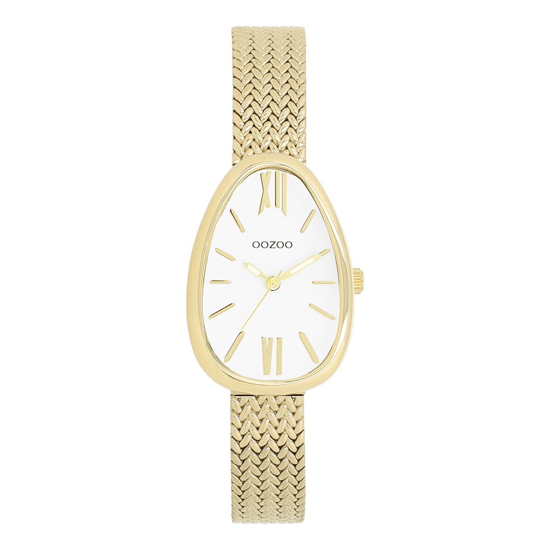 Stand out with this beautiful egg-shape ladies design from the trendy OOZOO Timepieces collection. The C11641 has a gold coloured metal v-mesh bracelet and 31x22 mm gold coloured metal watch case. You are making quite the fashion statement with this white dial, gold coloured stripes and Roman numerals digits and matching hands. This essential watch for your wardrobe has a mineral glass, stainless steel backplate and is nickel safe. This watch has a 2ATM Japanese movement and is covered by a 2 year warranty (see section 3 of our Refund, shipping & warranty policy).