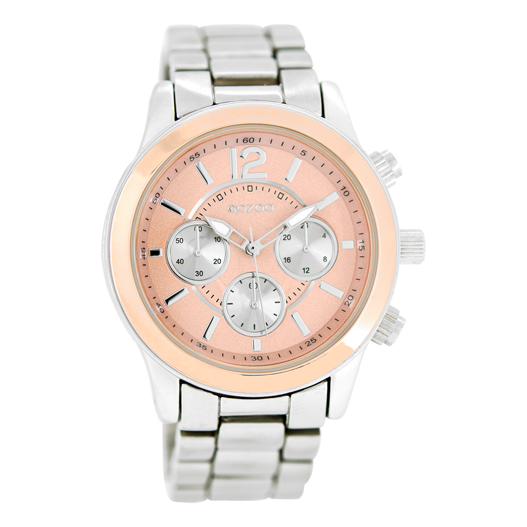 Rosé goudkleurige OOZOO horloge met zilverkleurige roestvrijstalen armband - C7232