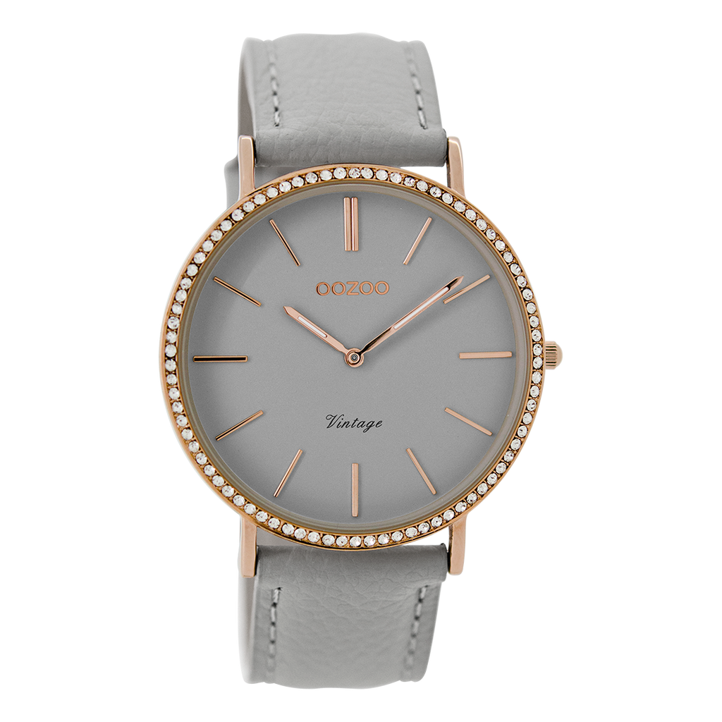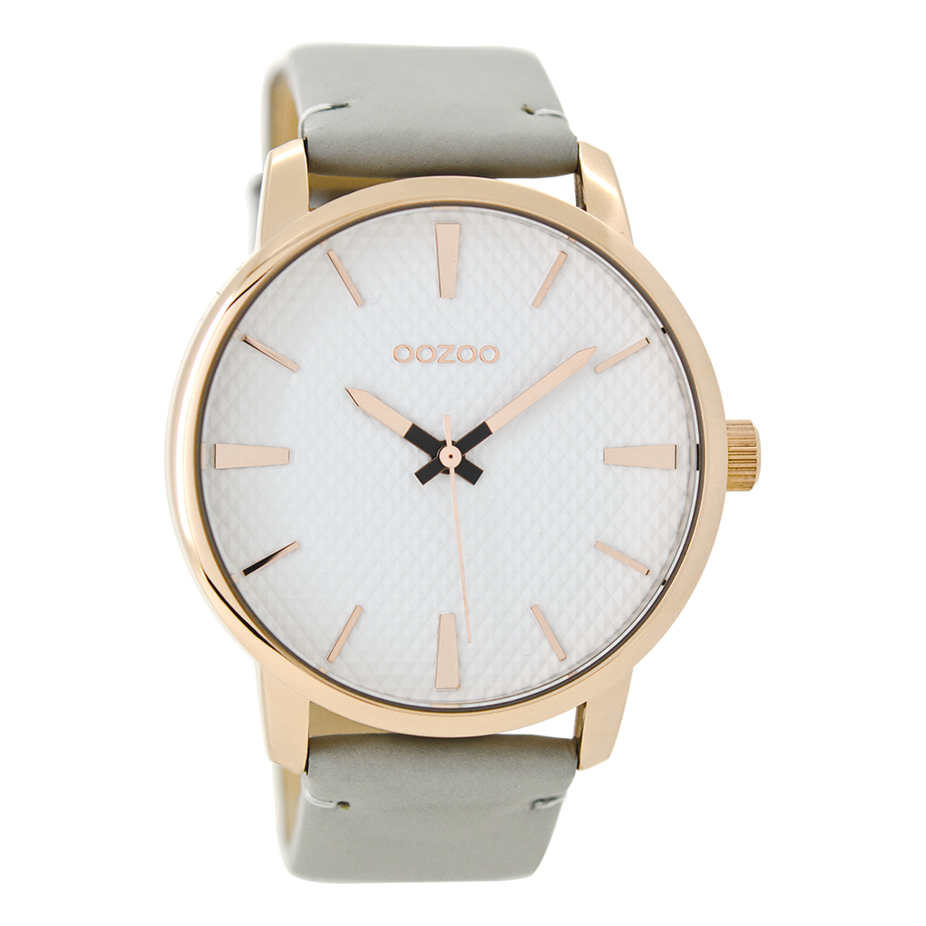 Rose gold coloured OOZOO watch with stone grey leather strap - C8885