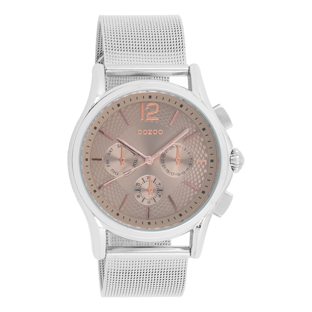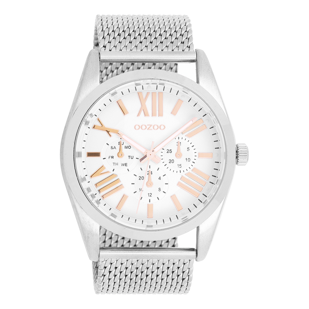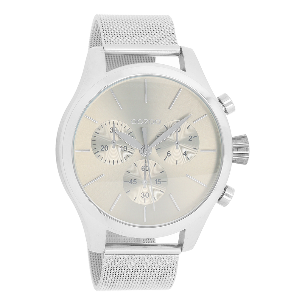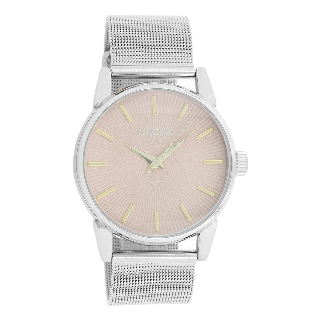 Zilverkleurige OOZOO horloge met metalen mesh armband - C9900