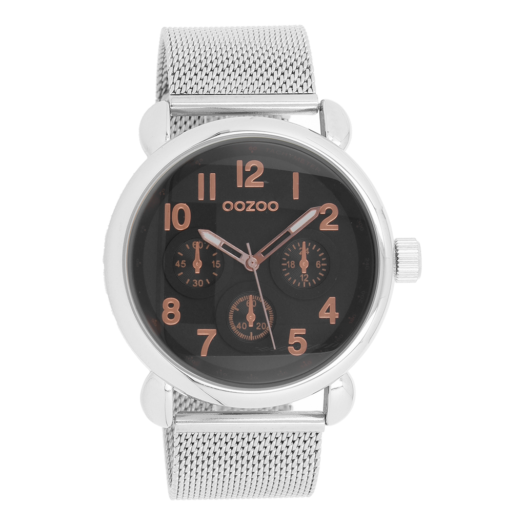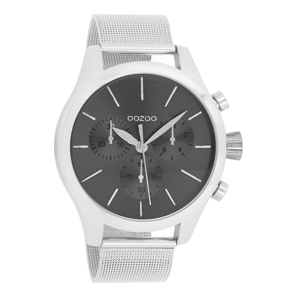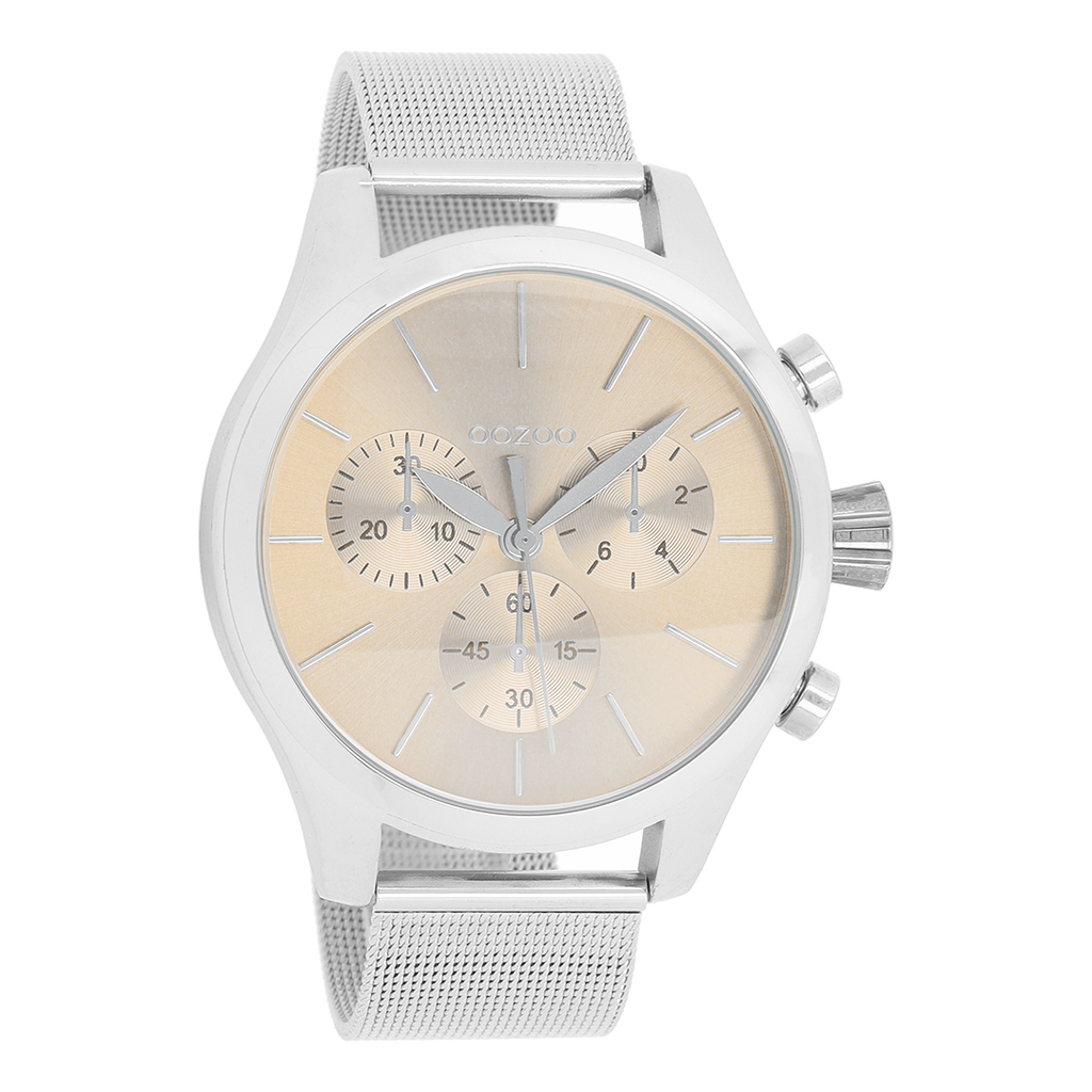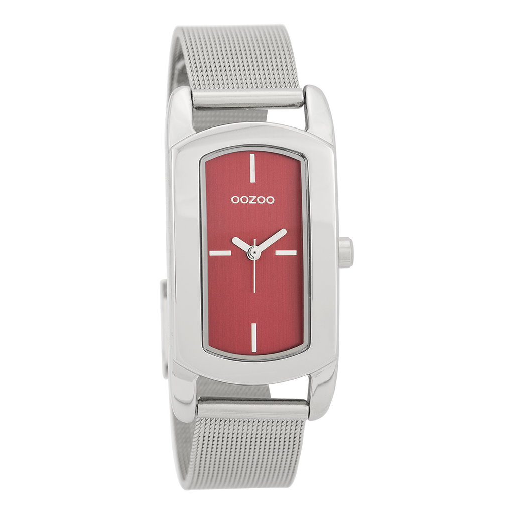 Zilverkleurige OOZOO horloge met metalen mesh armband - C9900