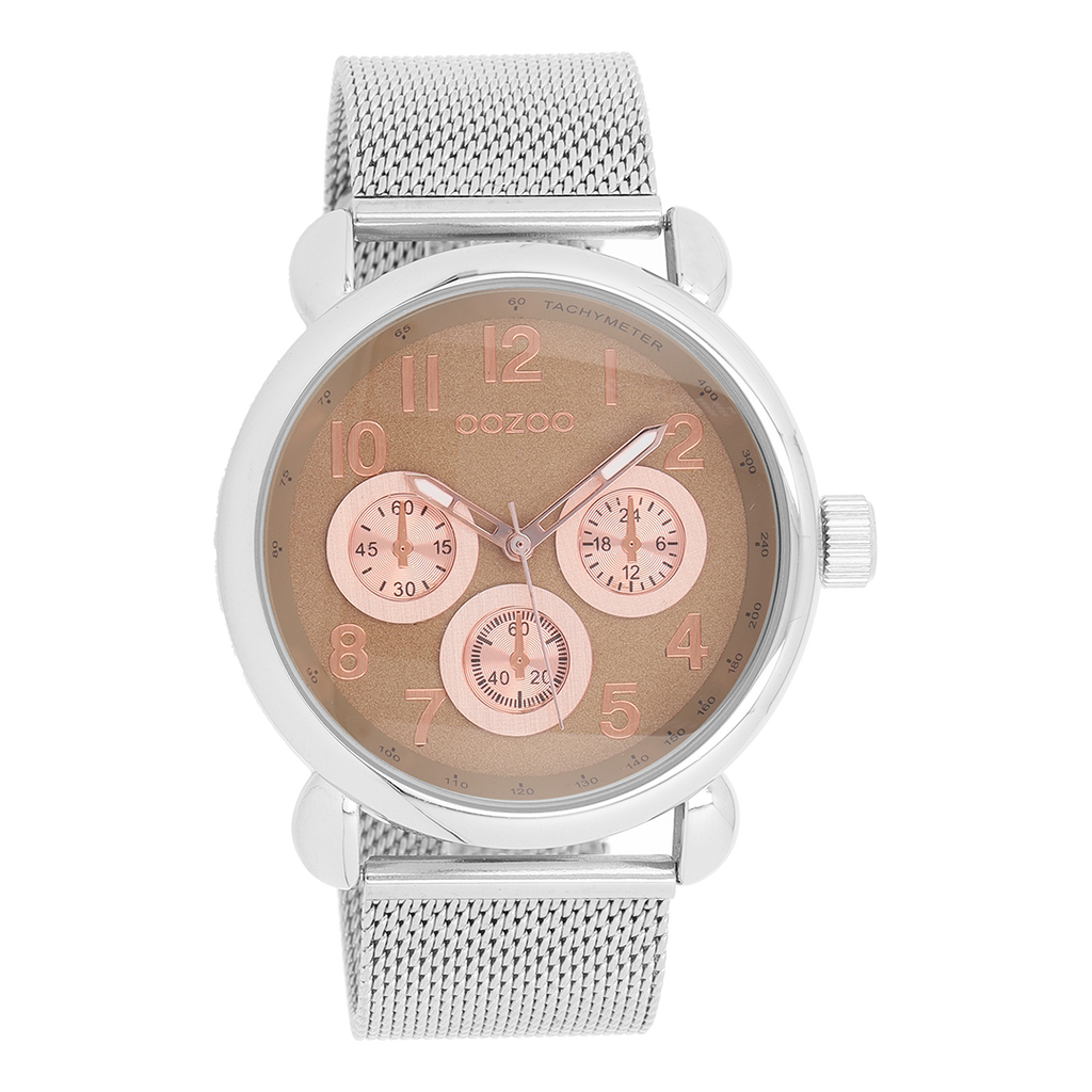 Zilverkleurige OOZOO horloge met metalen mesh armband - C9436