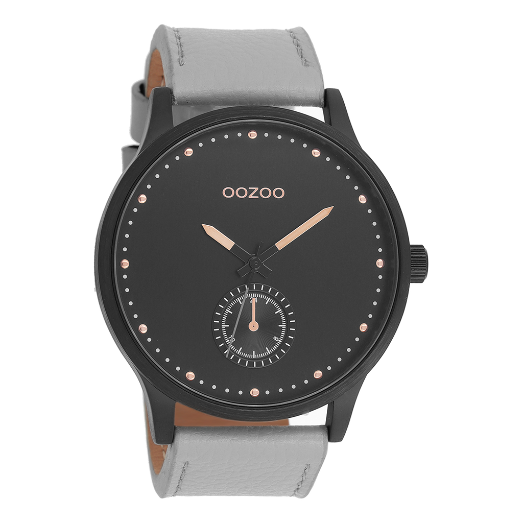 Zwarte OOZOO horloge met steengrijze leren band - C9006