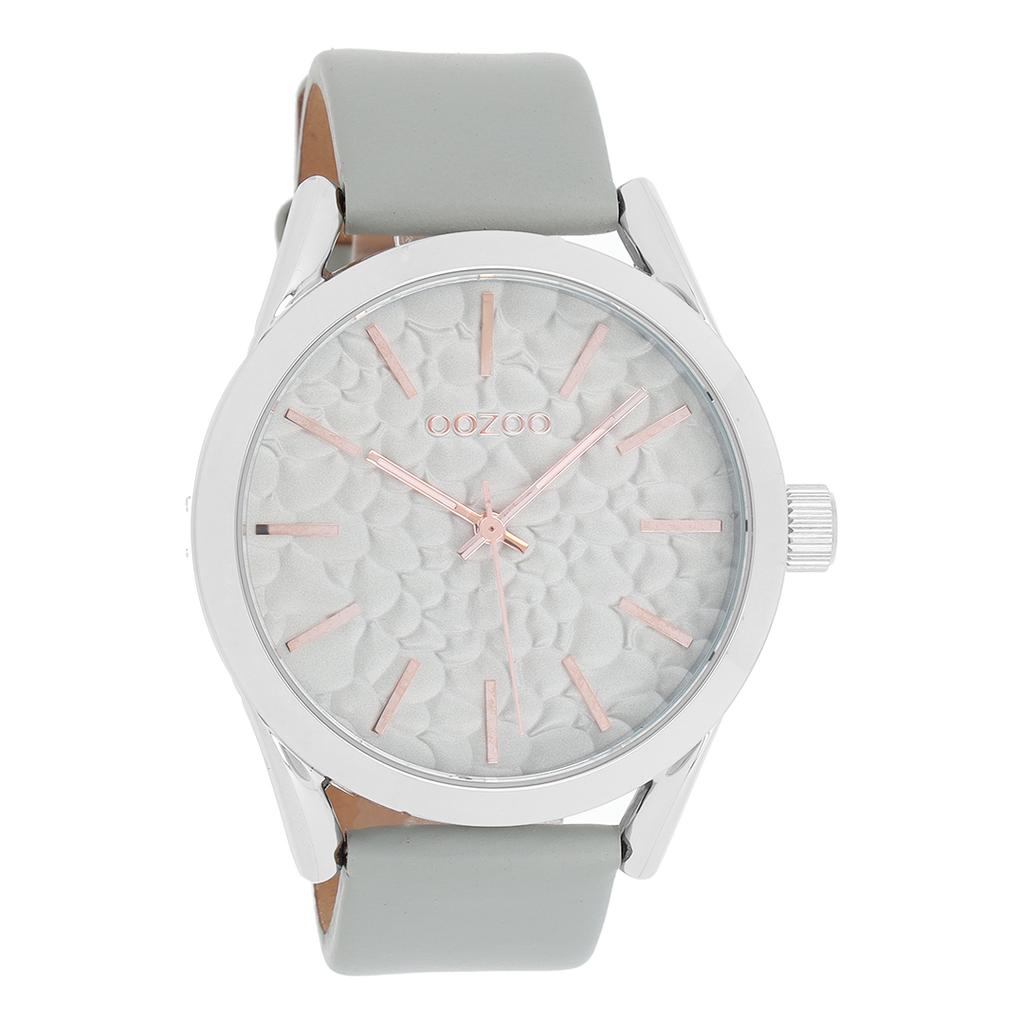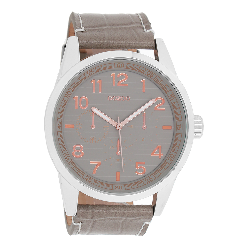 Zilverkleurige OOZOO horloge met steengrijze leren band - C9010