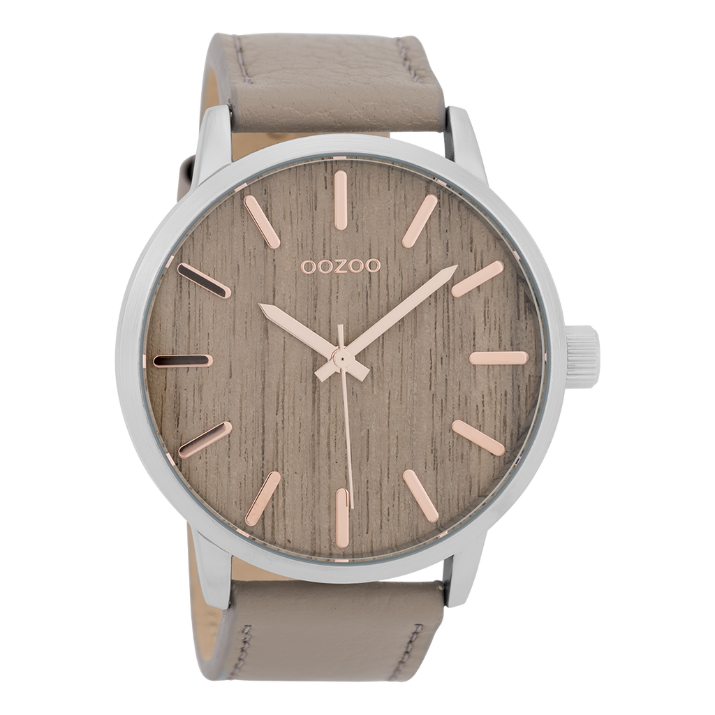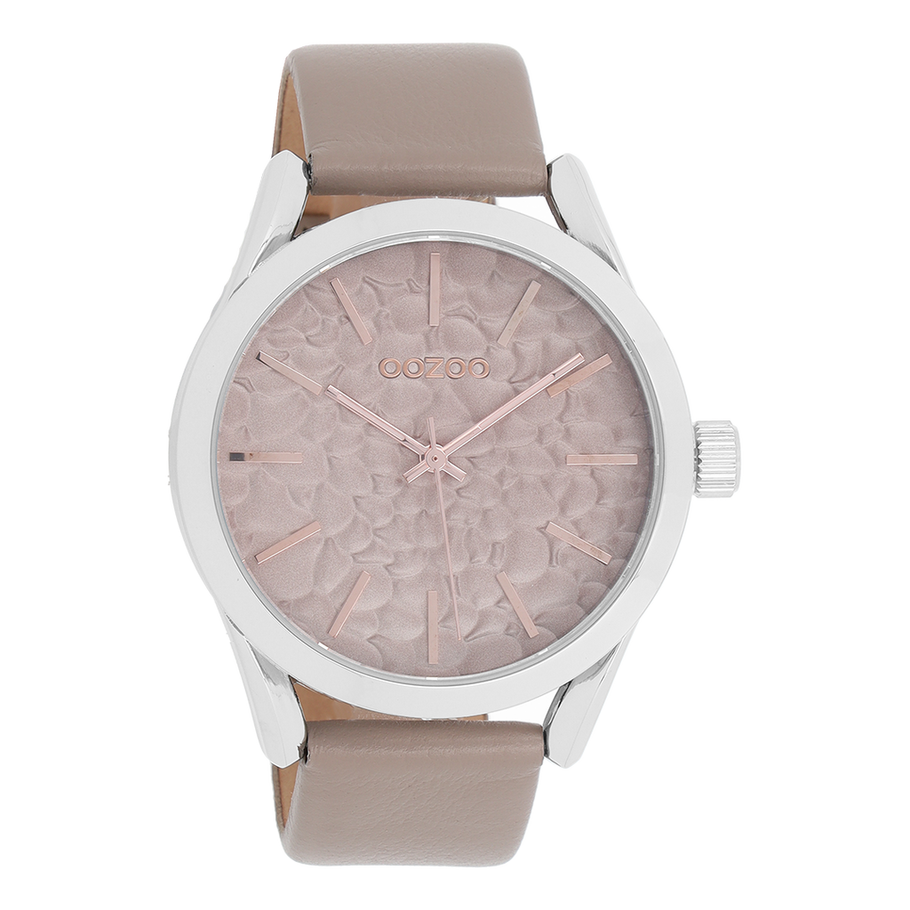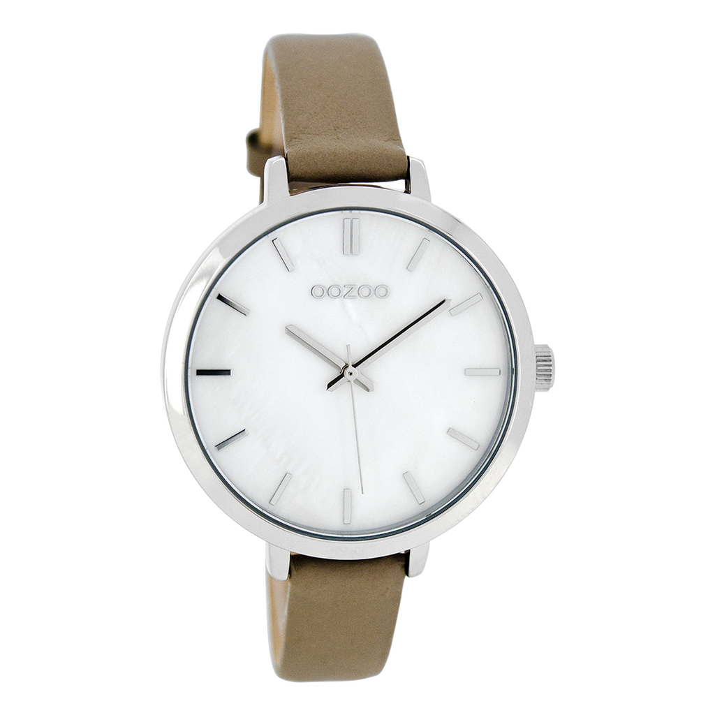 Zilverkleurige OOZOO horloge met taupe leren band - C8286