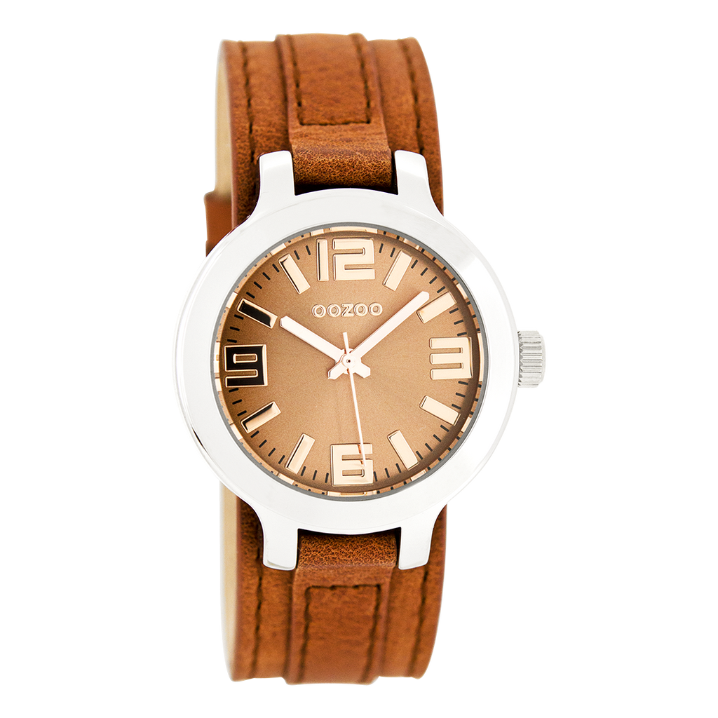 Zilverkleurige OOZOO horloge met terra leren band - C8706