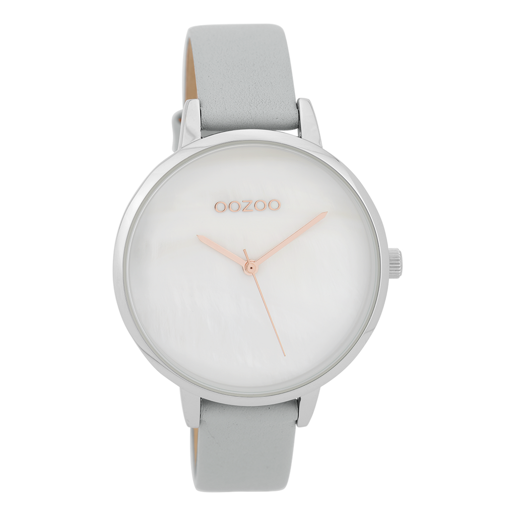 Zilverkleurige OOZOO horloge met steengrijze leren band - C9585