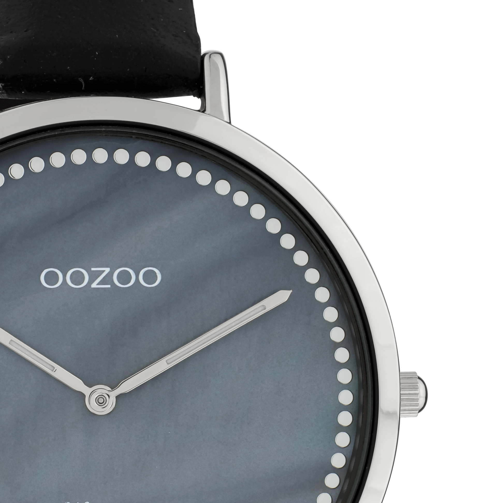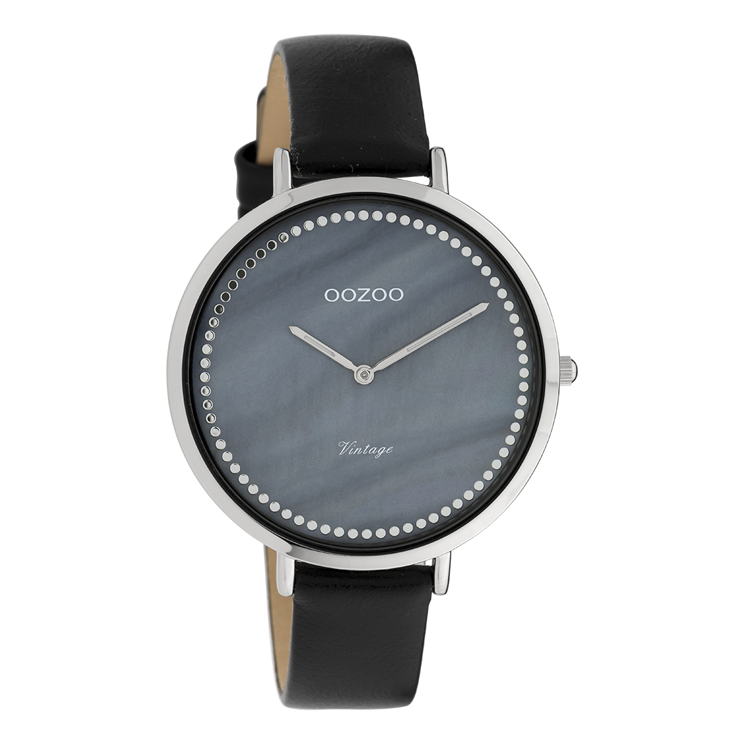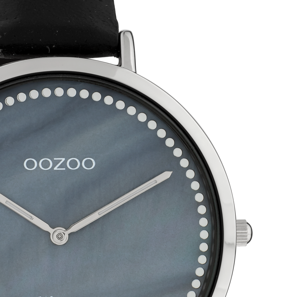 Zilverkleurige OOZOO horloge met zwarte leren band - C9853