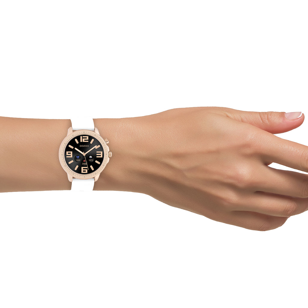 Rosé goudkleurige OOZOO smartwatch met witte rubber band - Q00322
