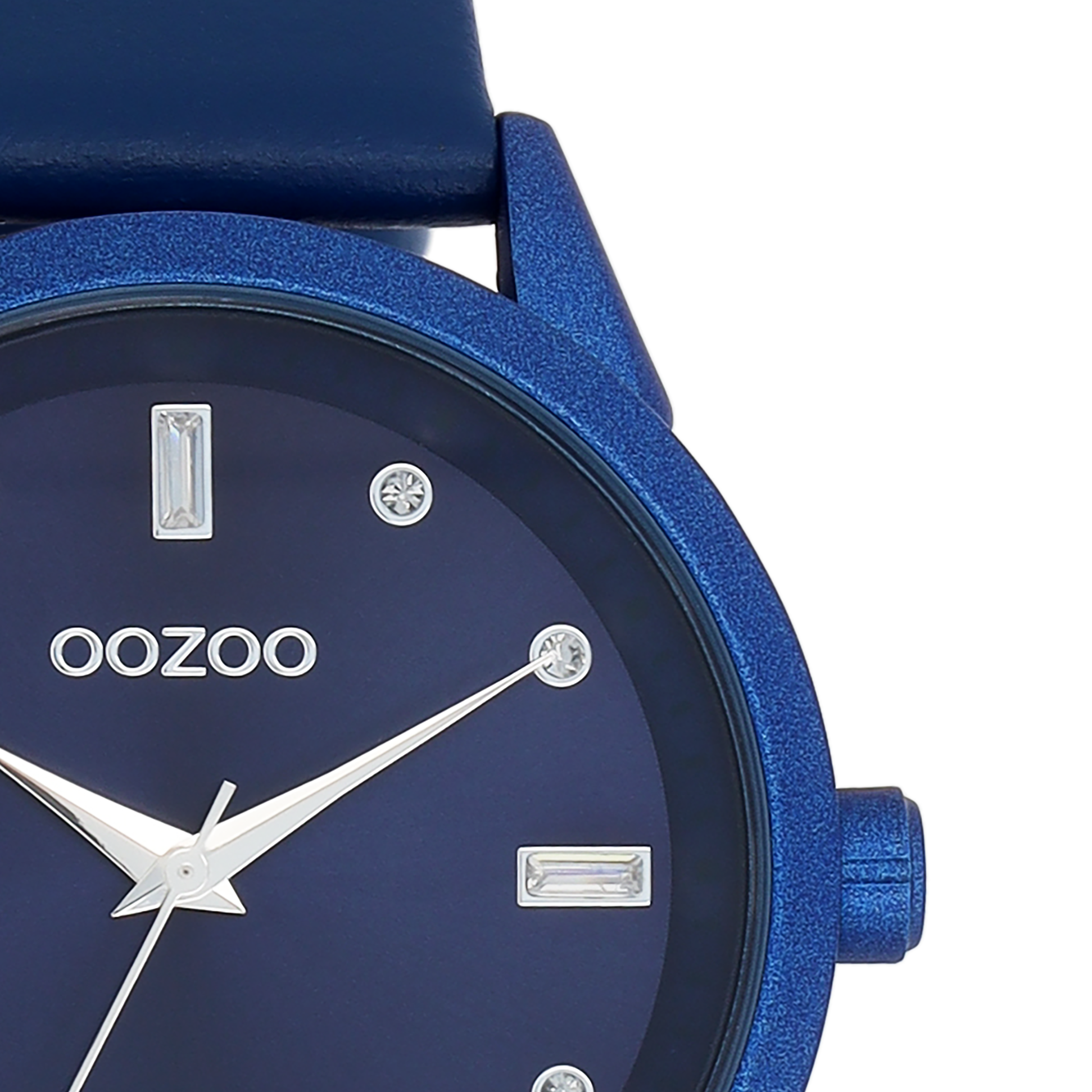 Val op met dit prachtige ronde dames design uit de trendy OOZOO Timepieces collectie. De C11288 heeft een blauwe leren band en 40 mm blauwe matte horlogekast. Maak een fashion statement met deze blauwe sunray wijzerplaat, zilverkleurige kristallen stippen en strepen tijdsaanduidingen en bijpassende wijzers. Dit horloge is een musthave voor jouw garderobe en heeft een mineraalglas, stainless steel achterplaat en is nikkel-safe. Dit horloge heeft een 2ATM Japans uurwerk en wordt gedekt door een garantie van 2 jaar (zie sectie 3 van onze Refund, shipping & warranty policy).