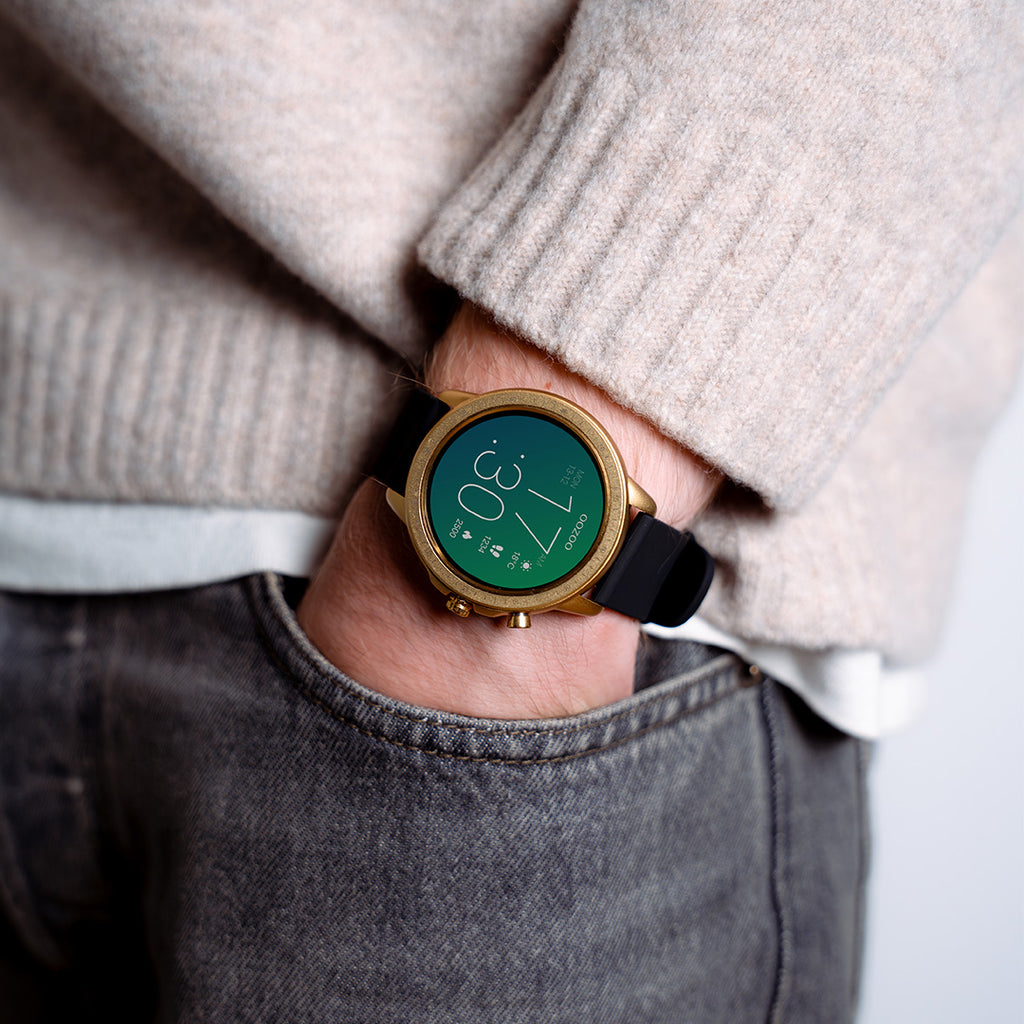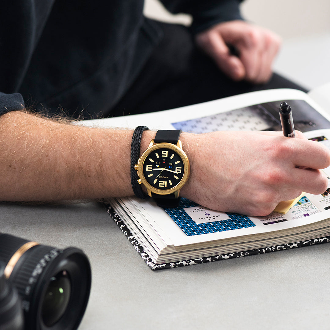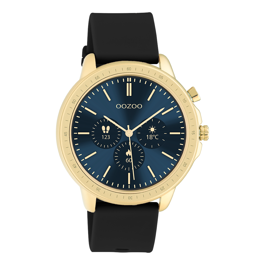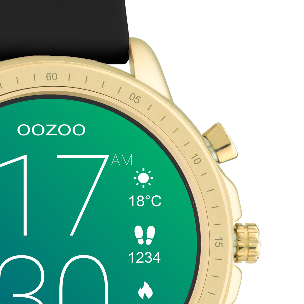 Goudkleurige OOZOO smartwatch met zwarte rubber band - Q00301