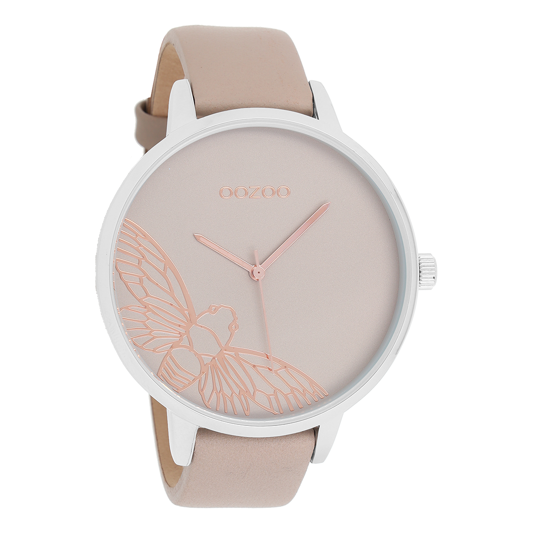 Zilverkleurige OOZOO horloge met taupe leren band - C10077