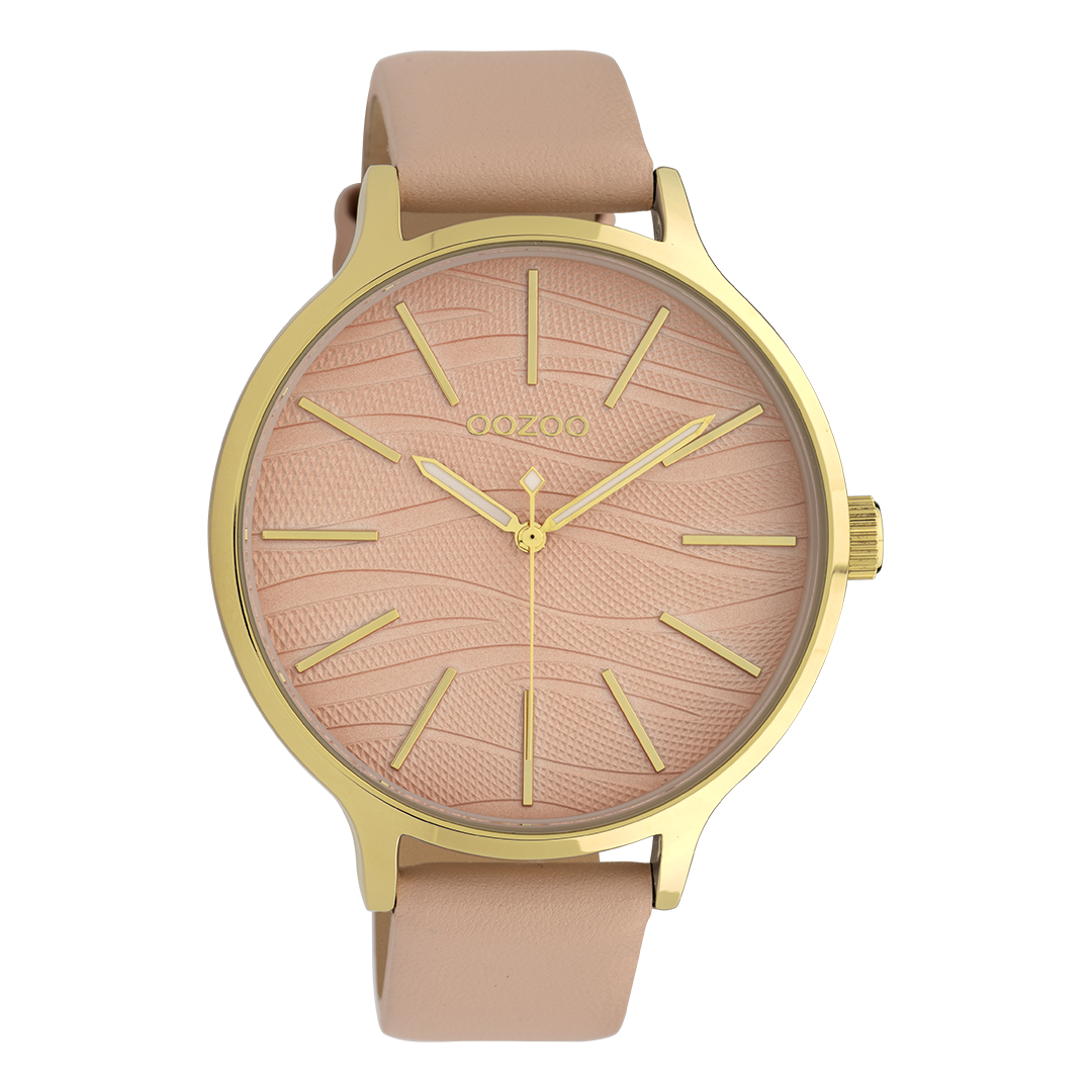 Goudkleurige OOZOO horloge met zacht roze leren band - C10121