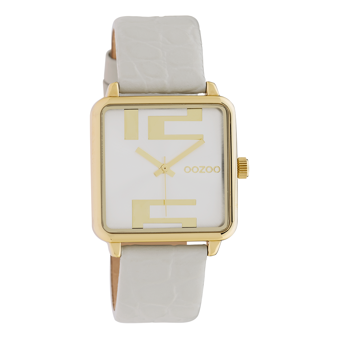 Goudkleurige OOZOO horloge met witte leren band - C10365