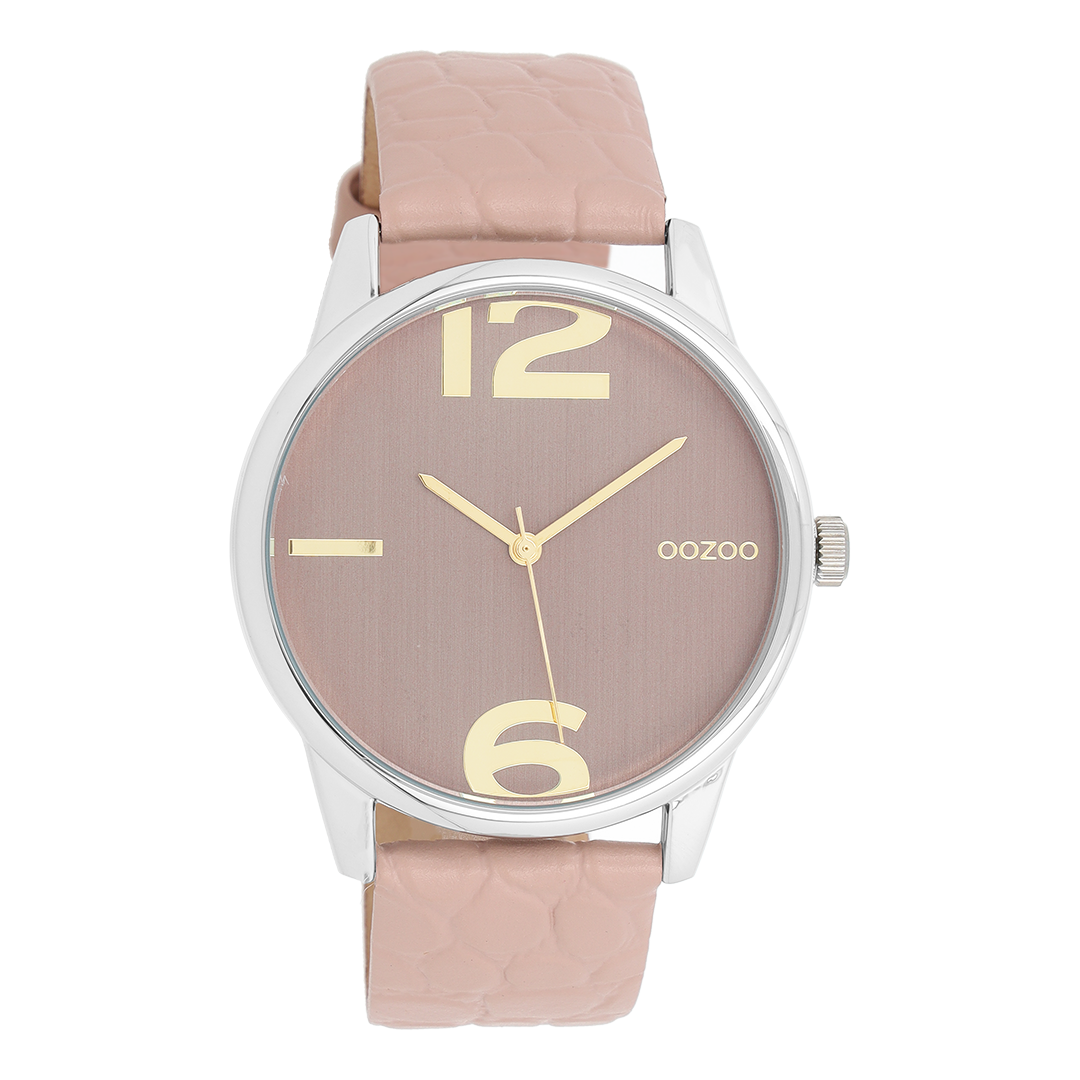 Zilverkleurige OOZOO horloge met zacht roze leren band - C10376