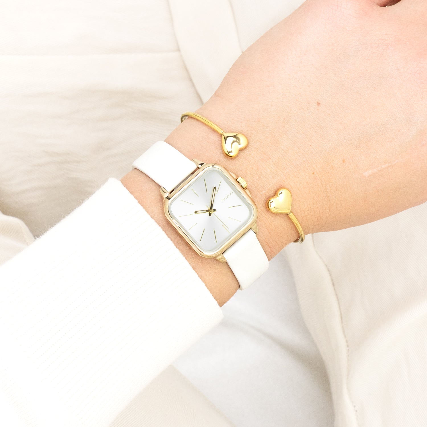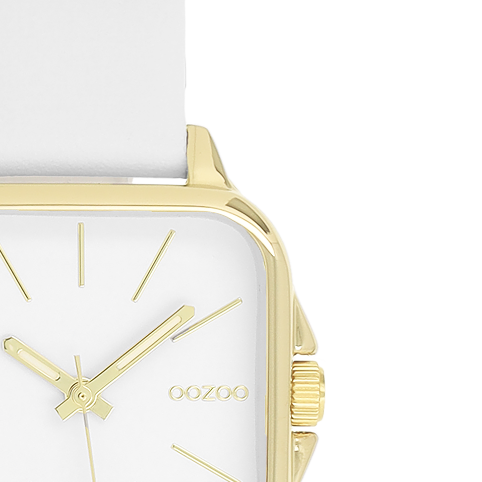 Val op met dit prachtige vierkante dames design uit de trendy OOZOO Timepieces collectie. De C11665 heeft een licht grijze leren band en 34x34 mm goudkleurige metalen horlogekast. Maak een fashion statement met deze licht grijze sunray wijzerplaat, goudkleurige strepen tijdsaanduidingen en bijpassende wijzers. Dit horloge is een musthave voor jouw garderobe en heeft een mineraalglas, stainless steel achterplaat en is nikkel-safe. Dit horloge heeft een 2ATM Japans uurwerk en wordt gedekt door een garantie van 2 jaar (zie sectie 3 van onze Refund, shipping & warranty policy).