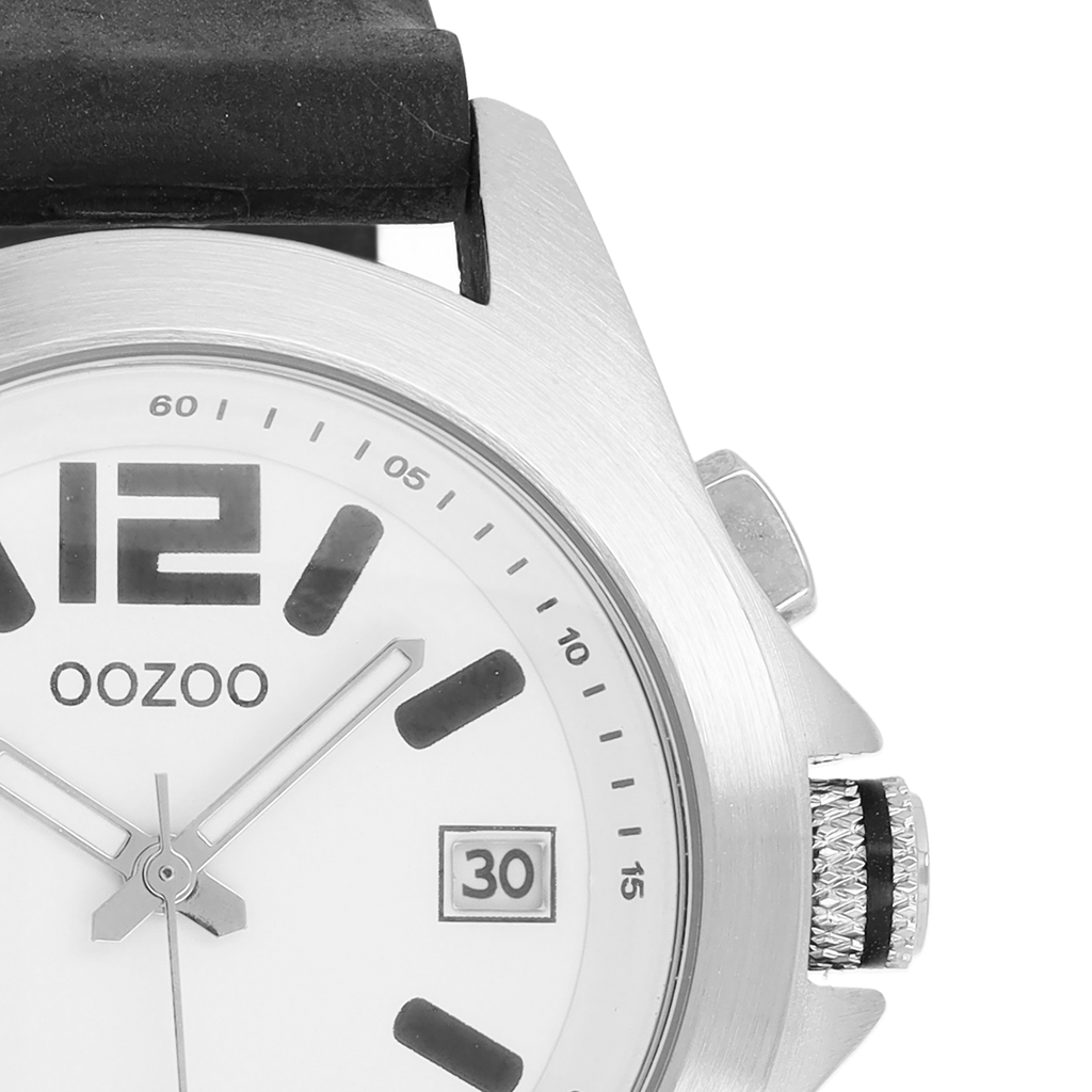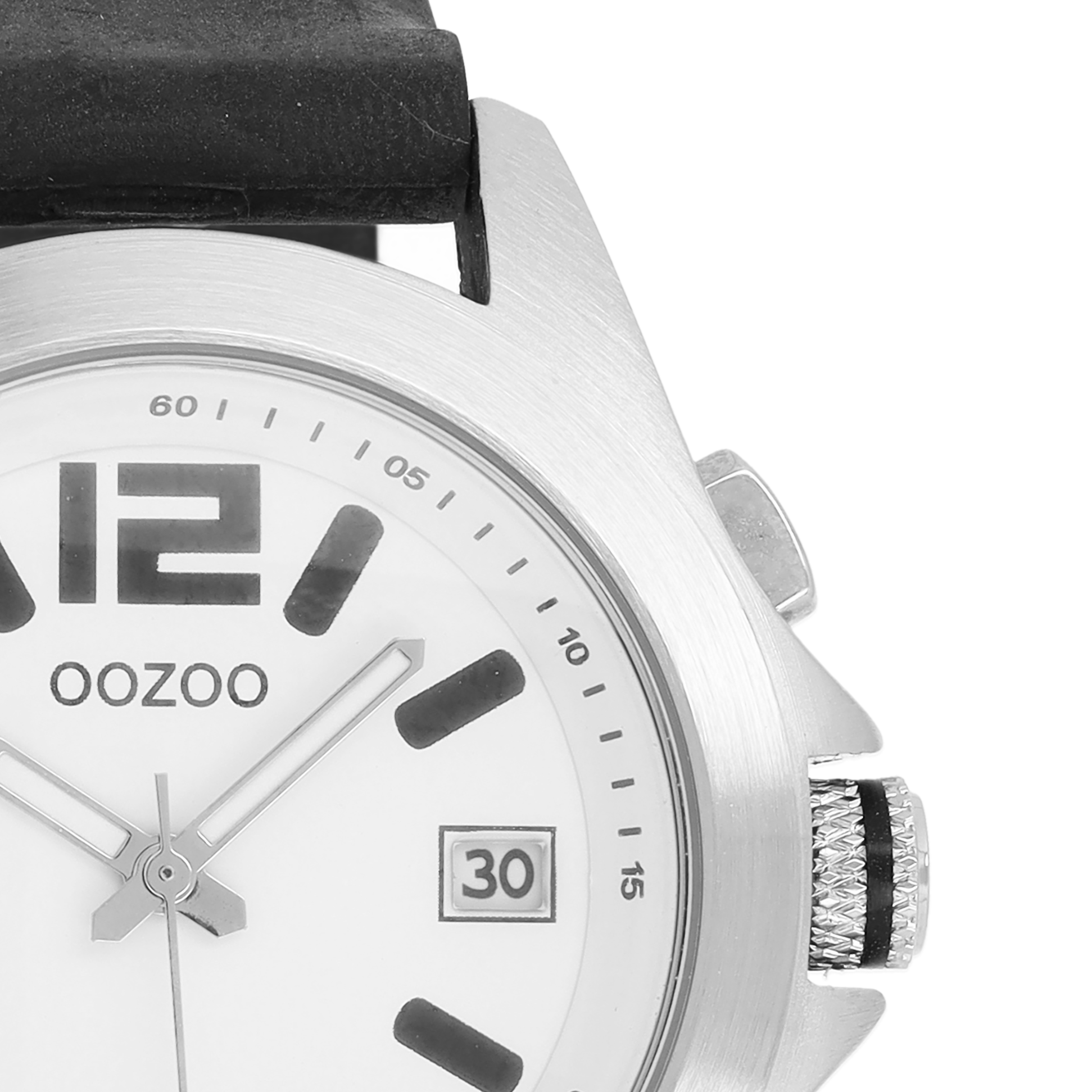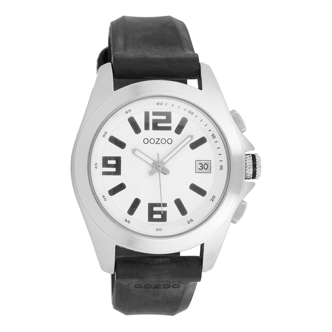 Zilverkleurige OOZOO horloge met zwarte leren band - C3167