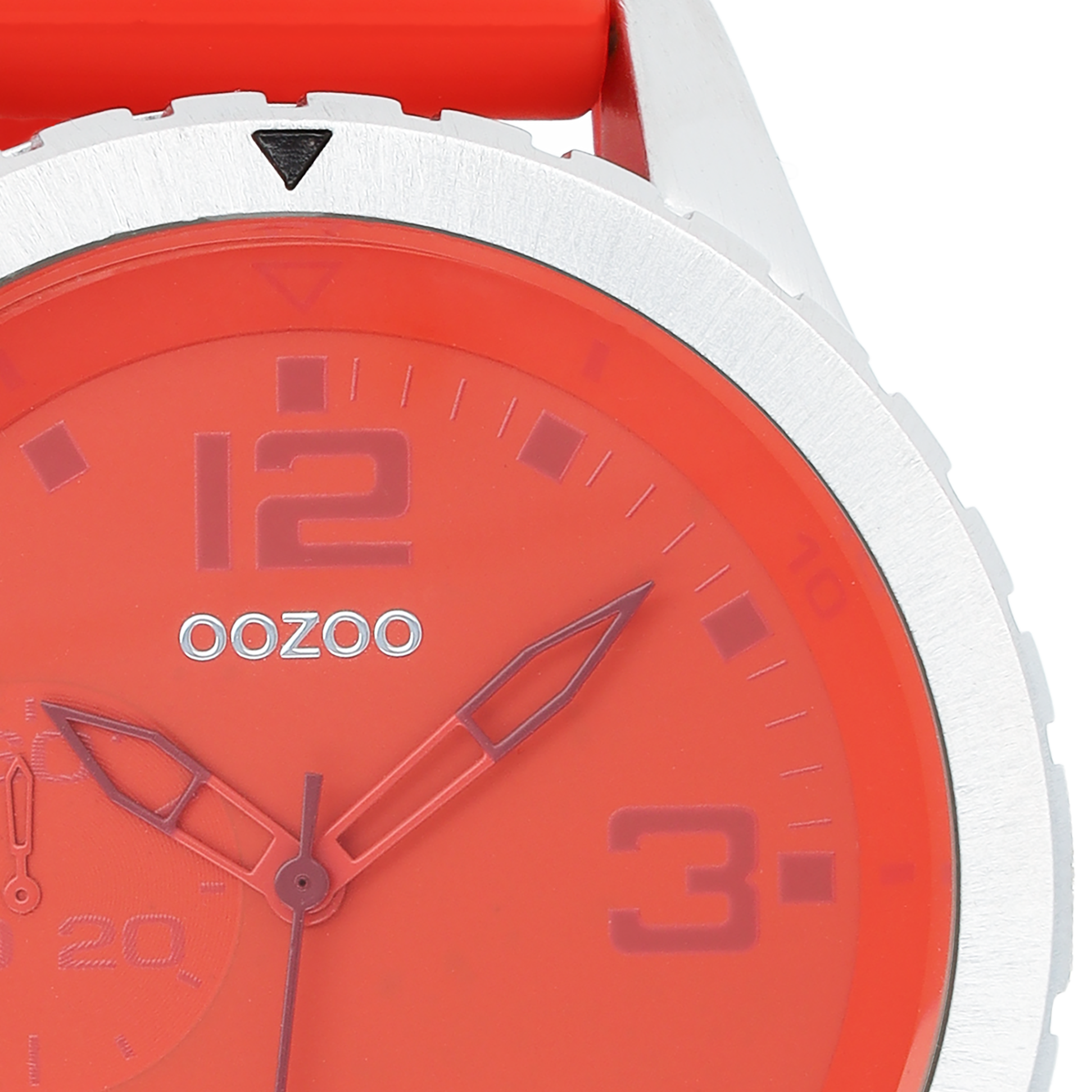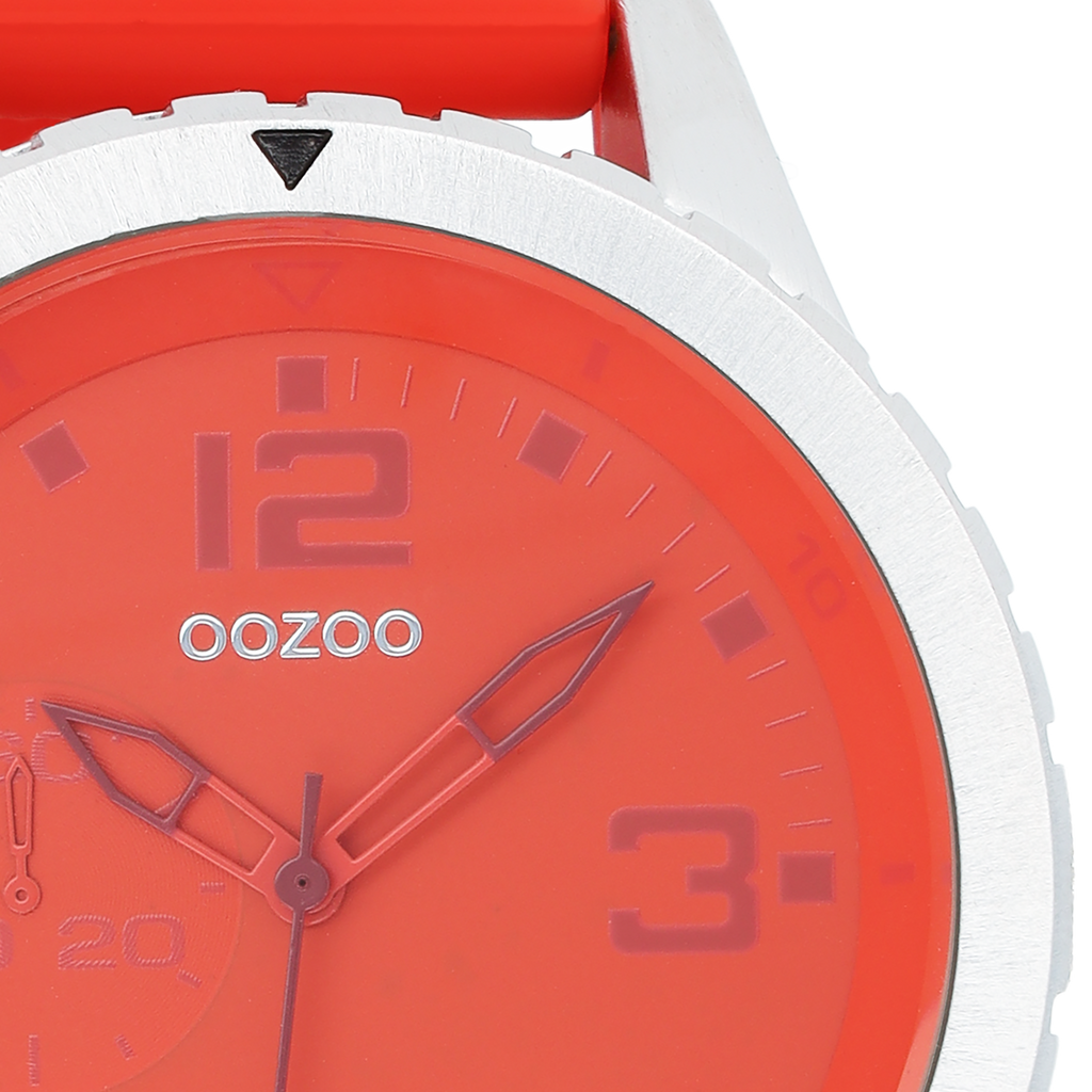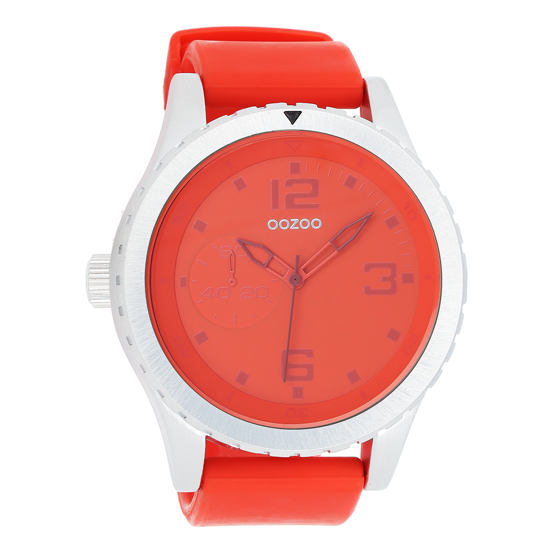 Zilverkleurige OOZOO horloge met rode rubber band - C3670