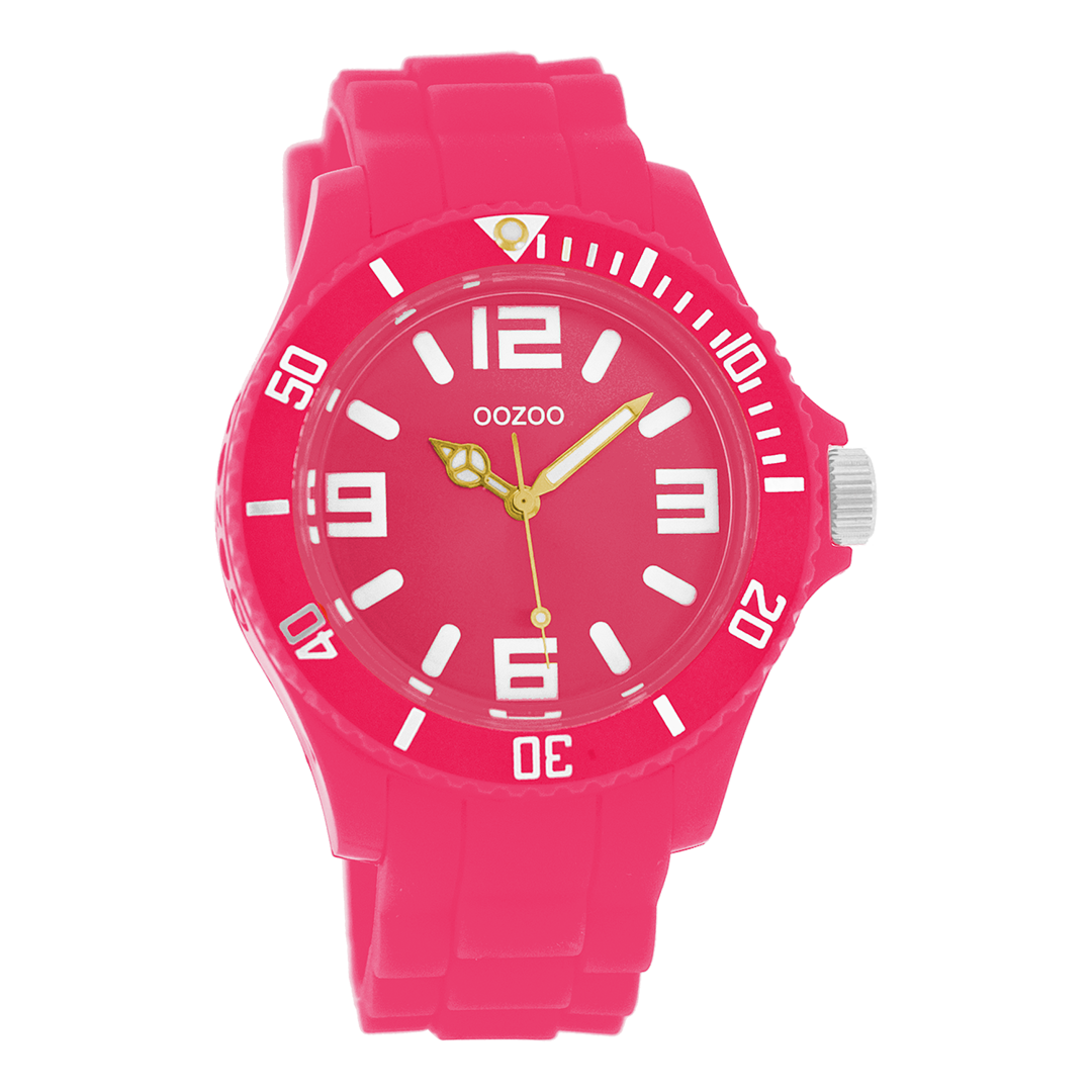 Val op met dit prachtige ronde unisex design uit de trendy OOZOO Timepieces collectie. De C4282 heeft een fluo roze rubber band en 43 mm fluo roze kunststof horlogekast. Maak een fashion statement met deze fluo roze sunray wijzerplaat, witte strepen en cijfers tijdsaanduidingen en zilverkleurig/witte wijzers. Dit horloge is een musthave voor jouw garderobe en heeft een mineraalglas, stainless steel achterplaat en is nikkel-safe. Dit horloge heeft een 2 Japanese uurwerk en wordt gedekt door een garantie van 2 jaar (zie sectie 3 van onze Refund, shipping & warranty policy).