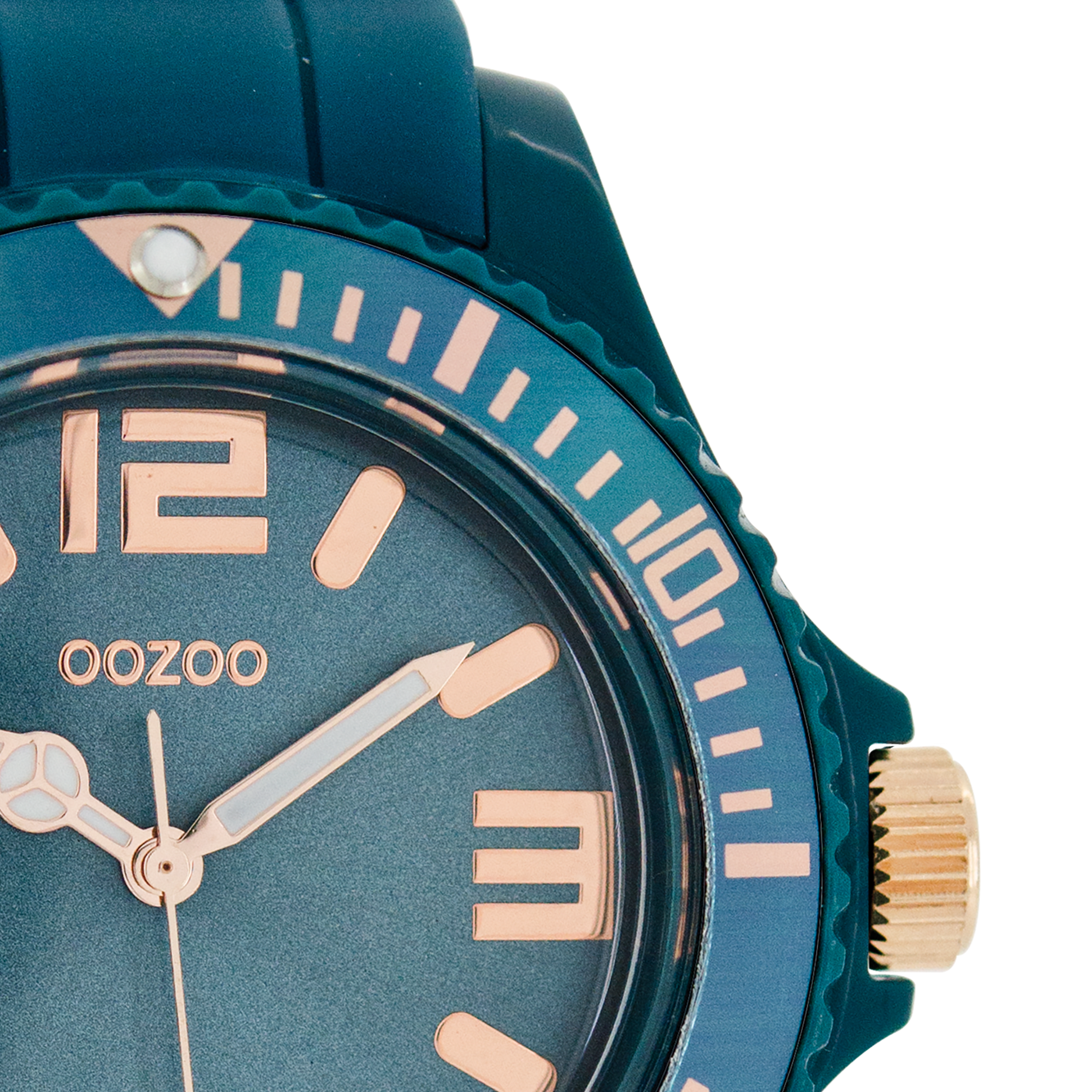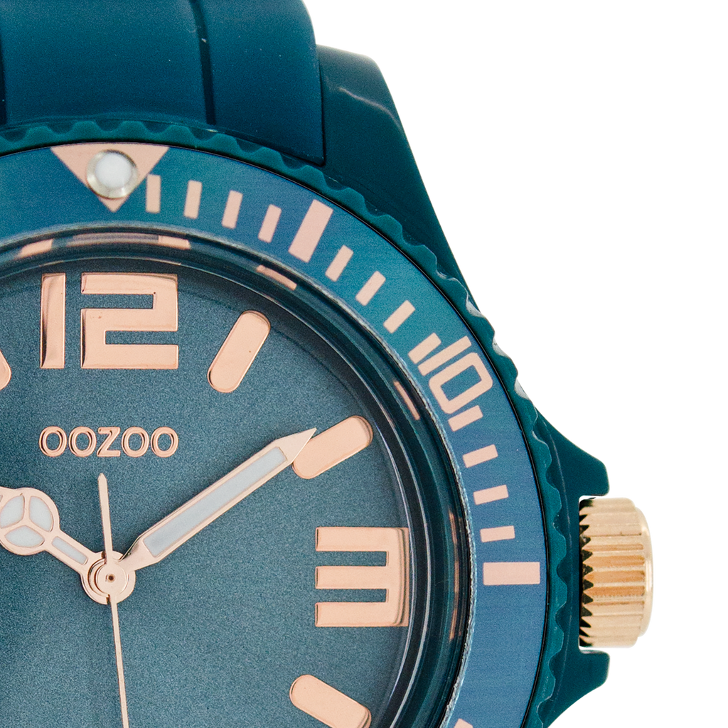 Val op met dit prachtige ronde unisex design uit de trendy OOZOO Timepieces collectie. De C5052 heeft een aqua blauwe rubber band en 43 mm aqua blauwe kunststof horlogekast. Maak een fashion statement met deze aqua blauwe sunray wijzerplaat, rosé goudkleurige strepen en cijfers tijdsaanduidingen en rosé kleurig/witte wijzers. Dit horloge is een musthave voor jouw garderobe en heeft een mineraalglas, stainless steel achterplaat en is nikkel-safe. Dit horloge heeft een 2 Japanese uurwerk en wordt gedekt door een garantie van 2 jaar (zie sectie 3 van onze Refund, shipping & warranty policy).
