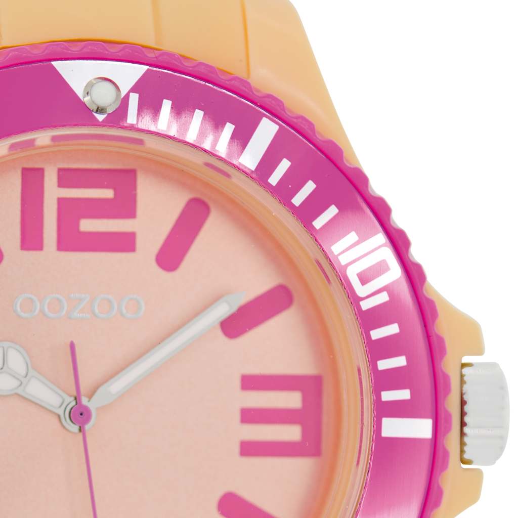 Val op met dit prachtige ronde unisex design uit de trendy OOZOO Timepieces collectie. De C5830 heeft een oranje rubber band en 48 mm oranje kunststof horlogekast. Maak een fashion statement met deze oranje wijzerplaat, roze strepen en cijfers tijdsaanduidingen en zilverkleurig/witte wijzers. Dit horloge is een musthave voor jouw garderobe en heeft een mineraalglas, stainless steel achterplaat en is nikkel-safe. Dit horloge heeft een 2 Japanese uurwerk en wordt gedekt door een garantie van 2 jaar (zie sectie 3 van onze Refund, shipping & warranty policy).