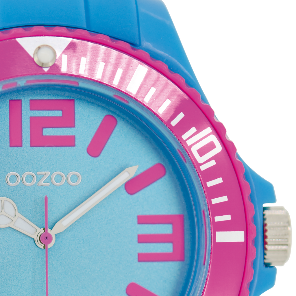 Val op met dit prachtige ronde unisex design uit de trendy OOZOO Timepieces collectie. De C5831 heeft een blauwe rubber band en 48 mm blauwe kunststof horlogekast. Maak een fashion statement met deze blauwe wijzerplaat, roze strepen en cijfers tijdsaanduidingen en zilverkleurig/witte wijzers. Dit horloge is een musthave voor jouw garderobe en heeft een mineraalglas, stainless steel achterplaat en is nikkel-safe. Dit horloge heeft een 2 Japanese uurwerk en wordt gedekt door een garantie van 2 jaar (zie sectie 3 van onze Refund, shipping & warranty policy).