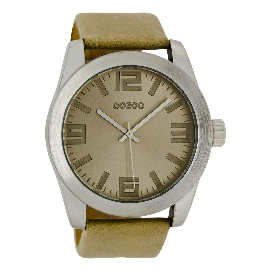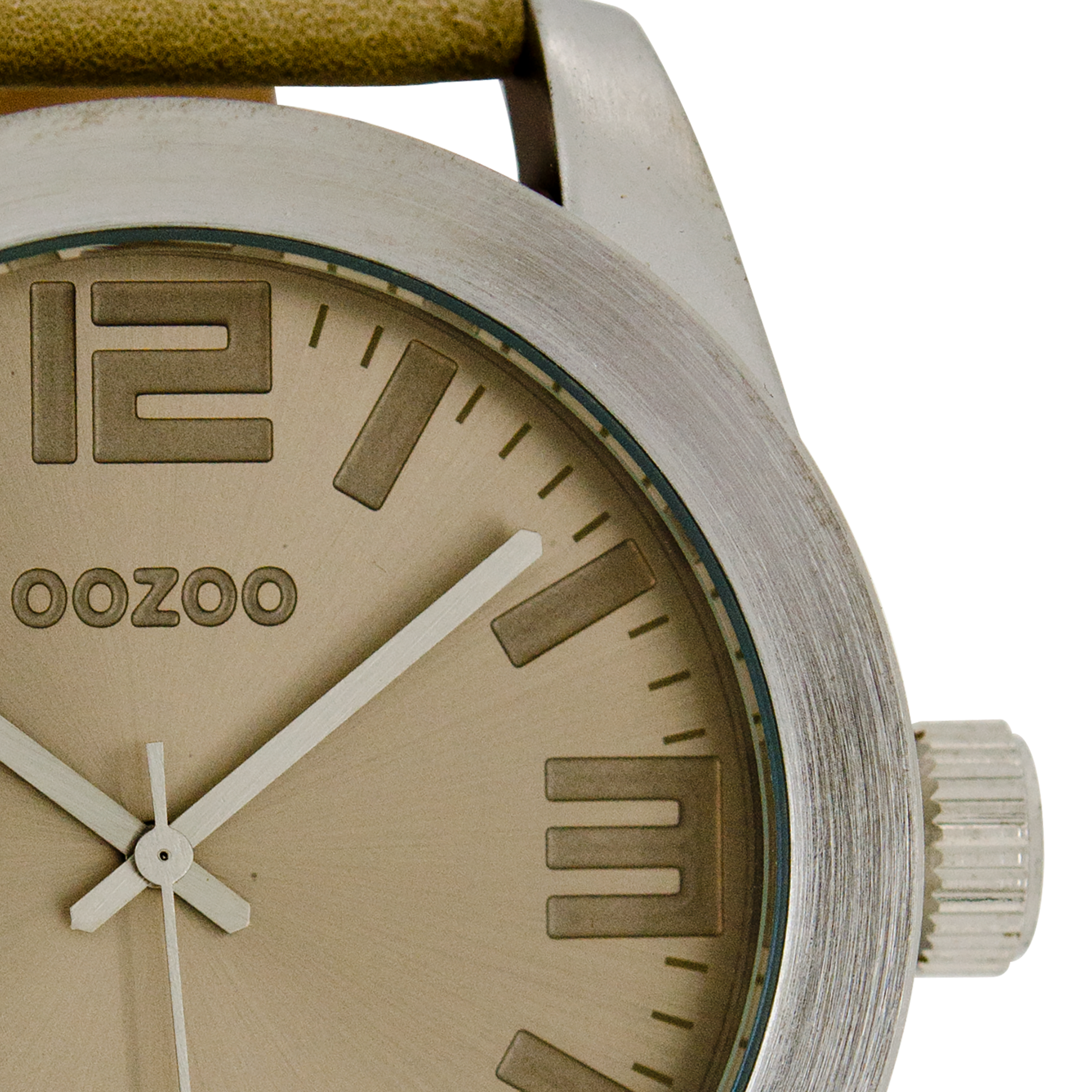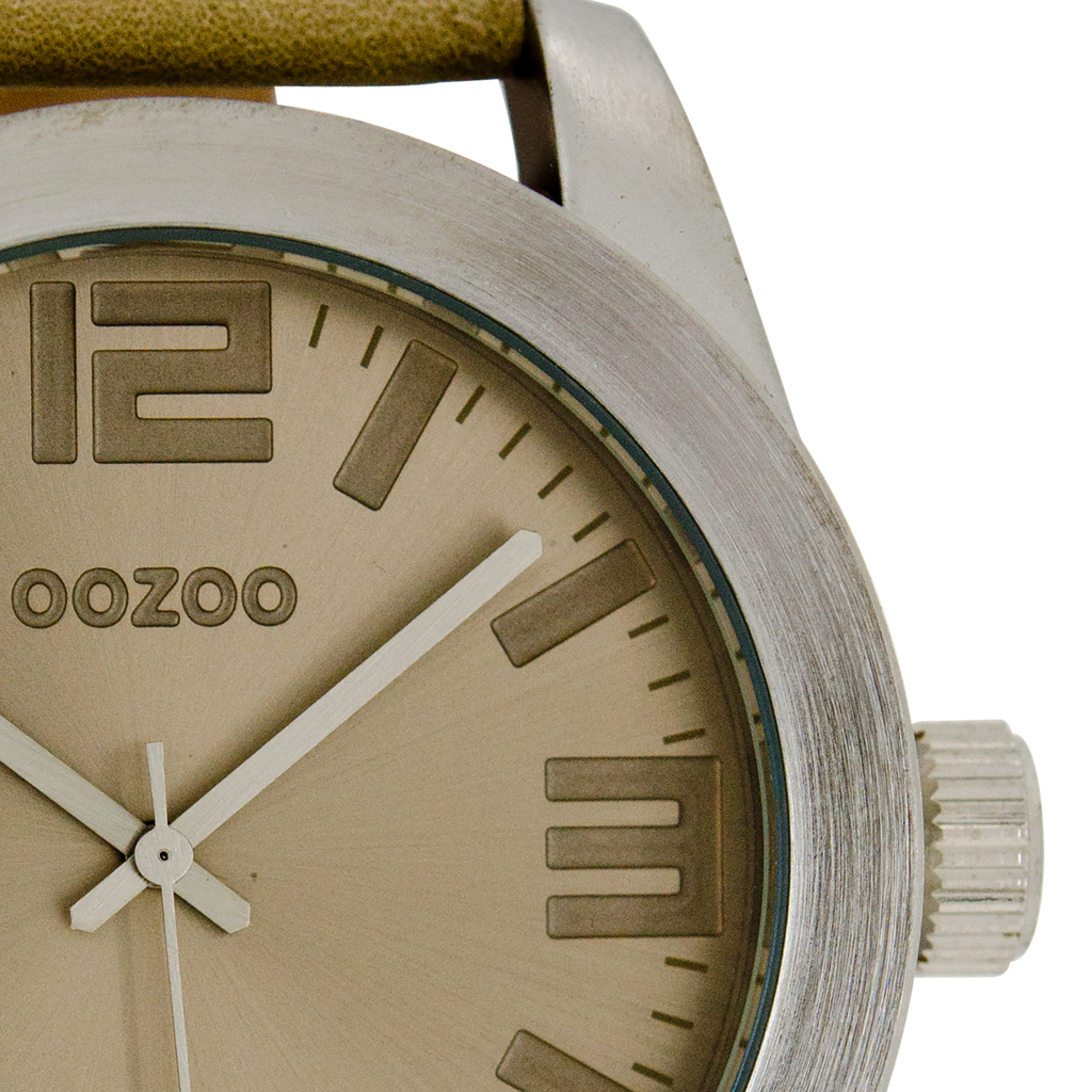 Zilverkleurige OOZOO horloge met zand leren band - C6106