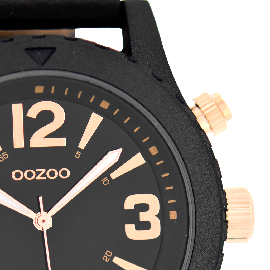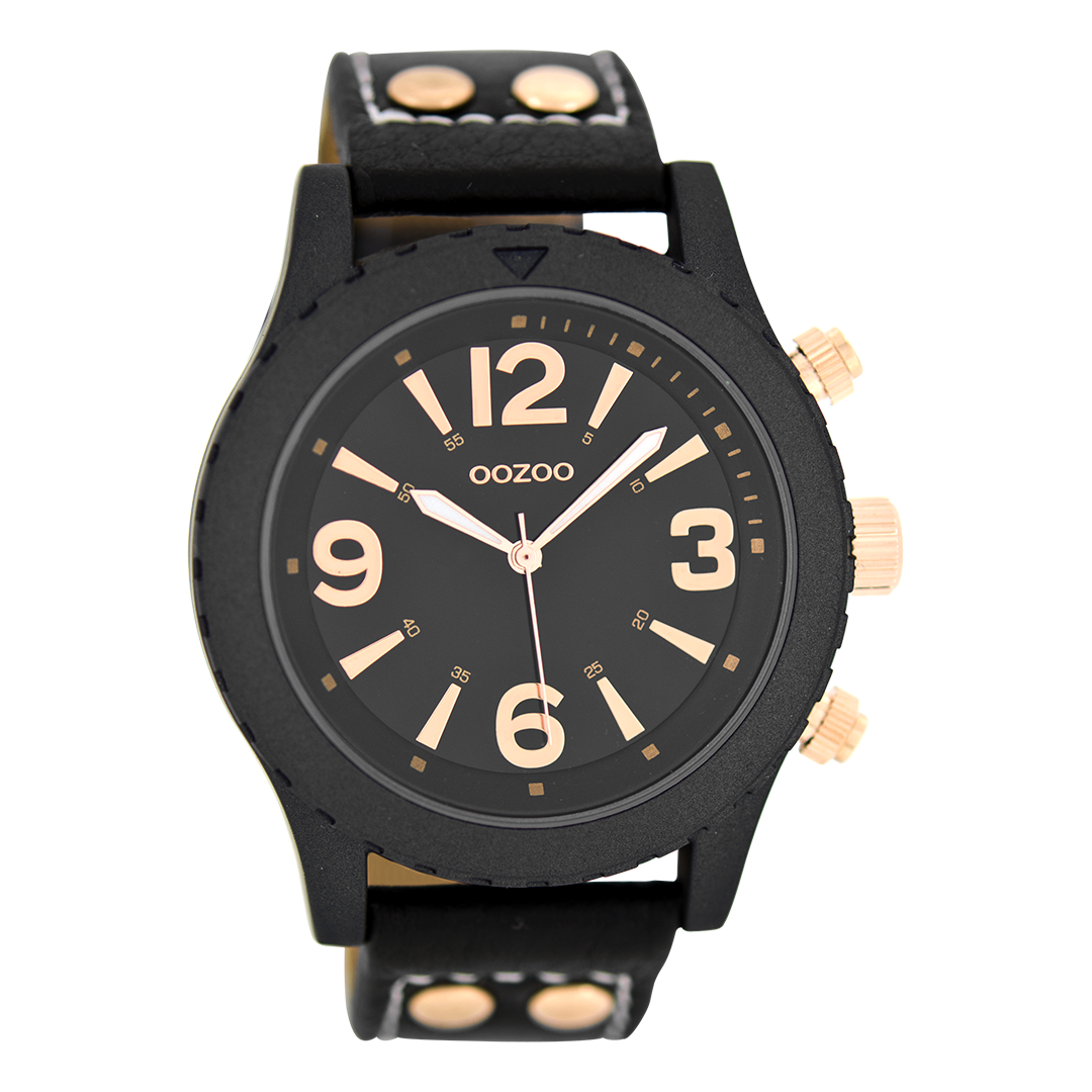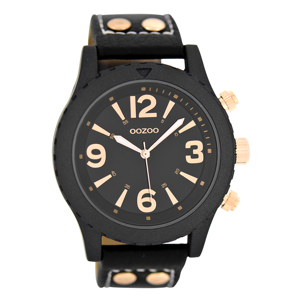 Val op met dit prachtige ronde heren design uit de trendy OOZOO Timepieces collectie. De C6114 heeft een met studs bewerkte zwarte leren band en 45 mm zwarte matte horlogekast. Maak een fashion statement met deze zwarte wijzerplaat, rosé goudkleurige strepen en cijfers tijdsaanduidingen en rosé kleurig/witte wijzers. Dit horloge is een musthave voor jouw garderobe en heeft een mineraalglas, stainless steel achterplaat en is nikkel-safe. Dit horloge heeft een 2 Japanese uurwerk en wordt gedekt door een garantie van 2 jaar (zie sectie 3 van onze Refund, shipping & warranty policy).