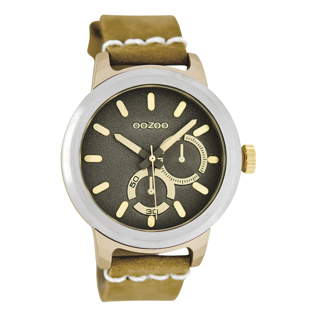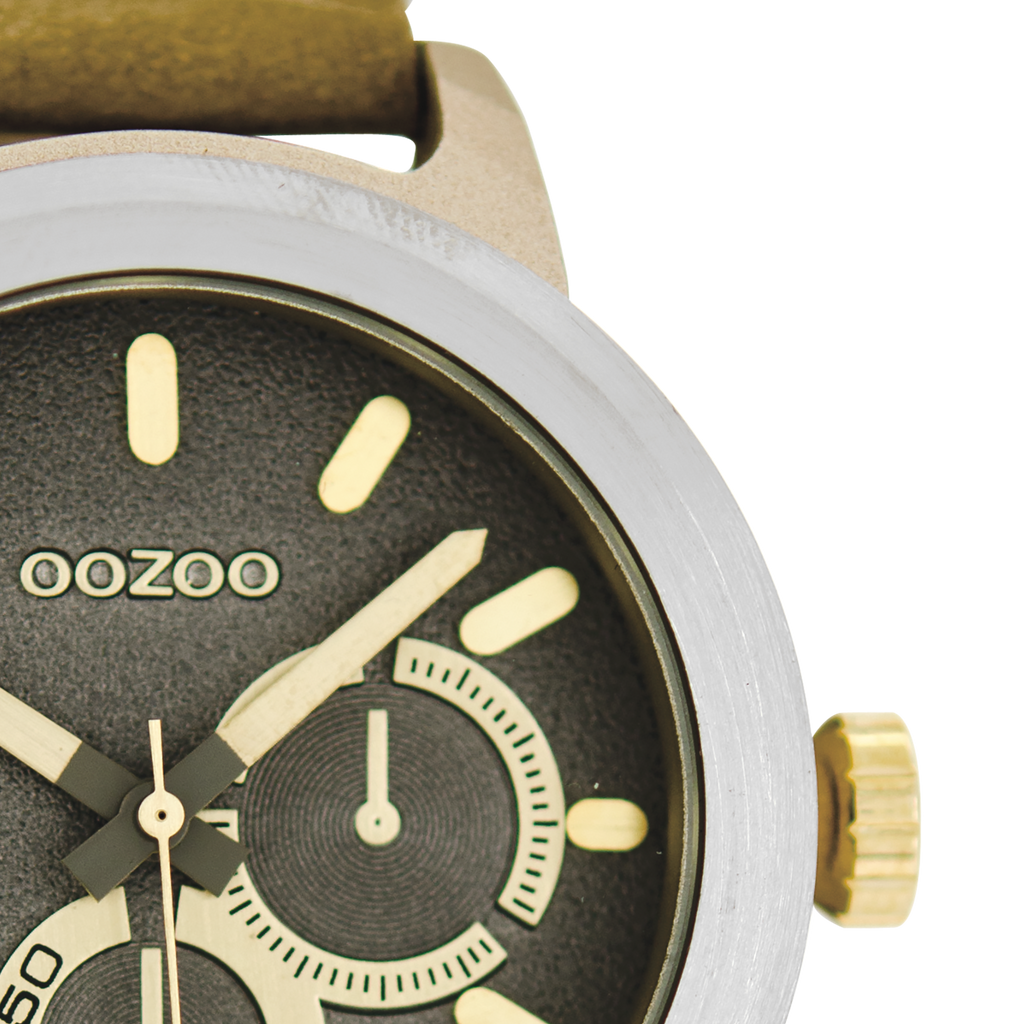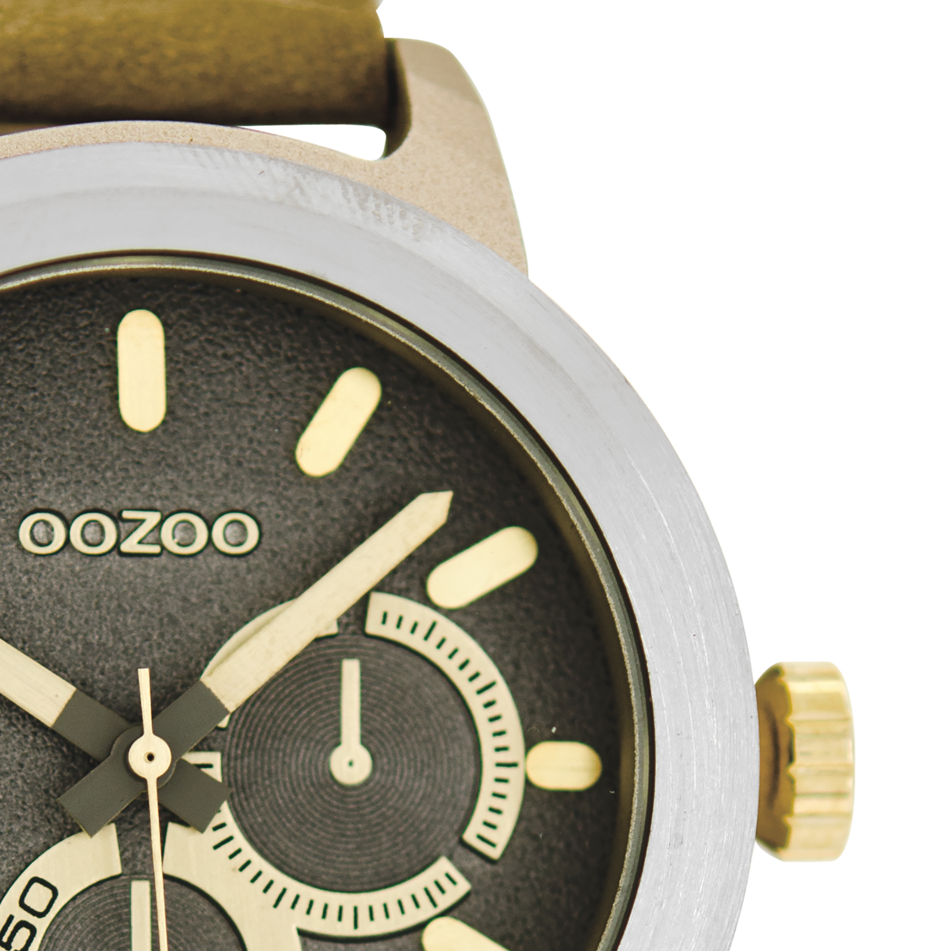Zilverkleurige OOZOO horloge met zand leren band - C6205