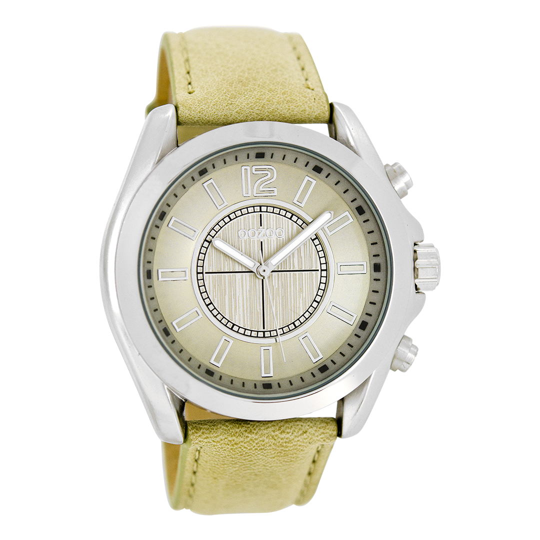Zilverkleurige OOZOO horloge met zand leren band - C6245