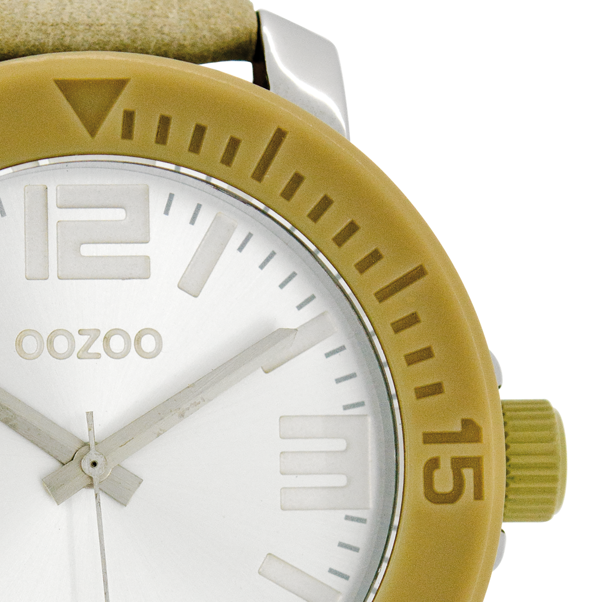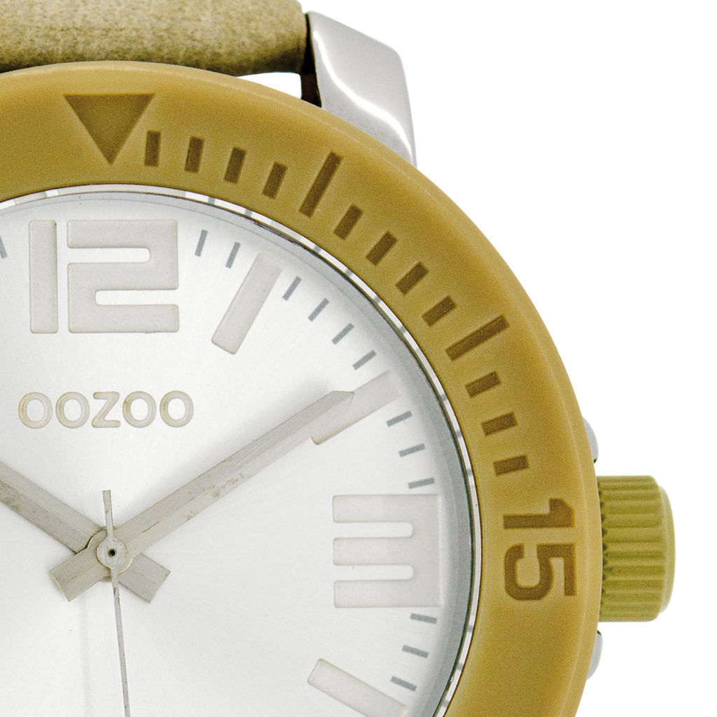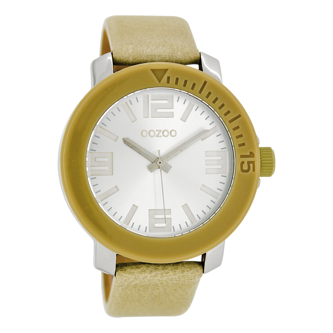 Zilverkleurige OOZOO horloge met zand leren band - C6260