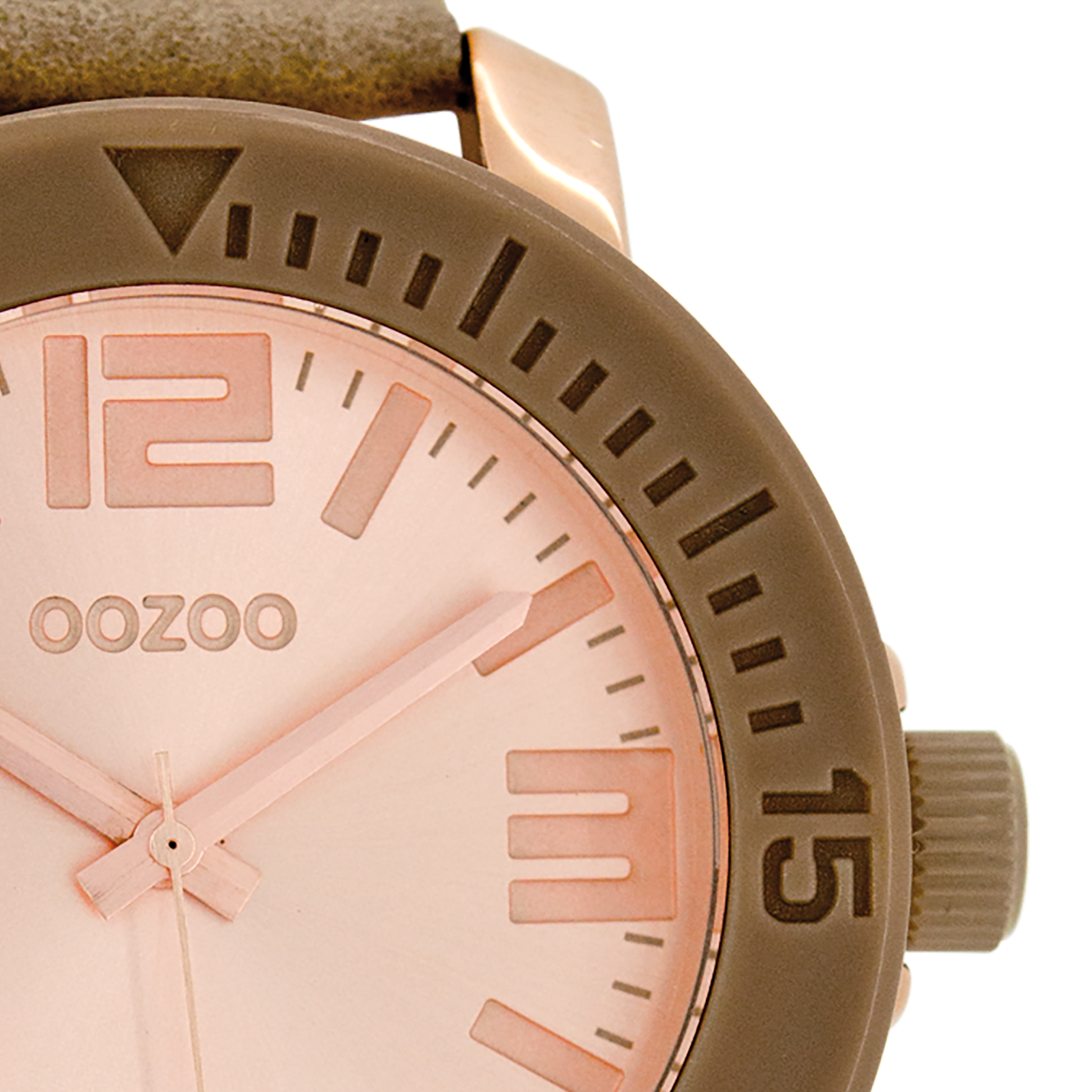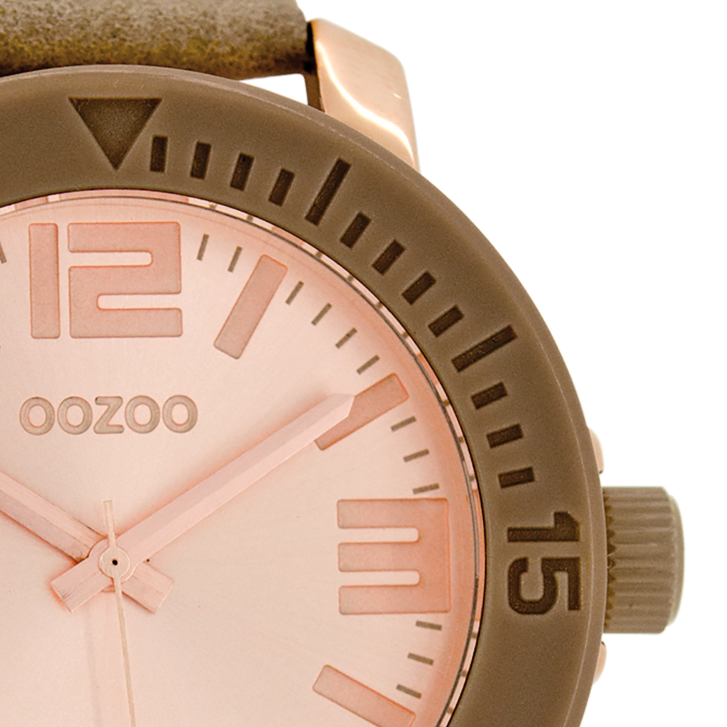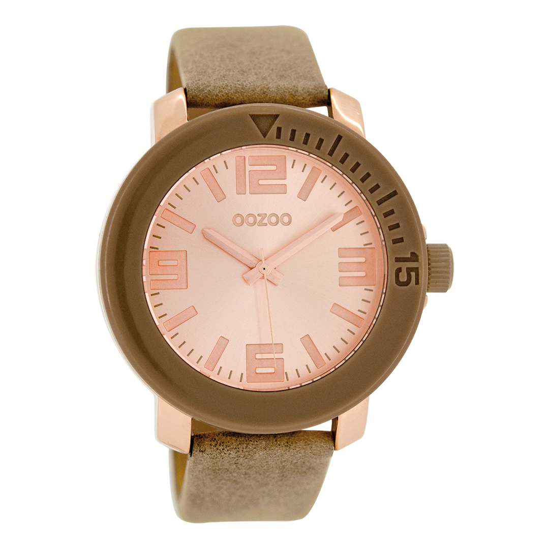 Rosé goudkleurige OOZOO horloge met bruine leren band - C6261