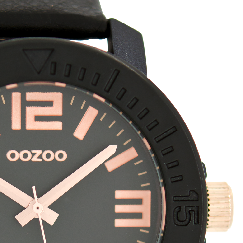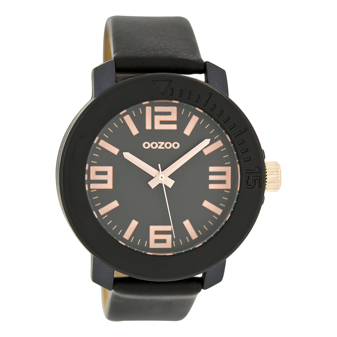 Zwarte OOZOO horloge met leren band - C6264