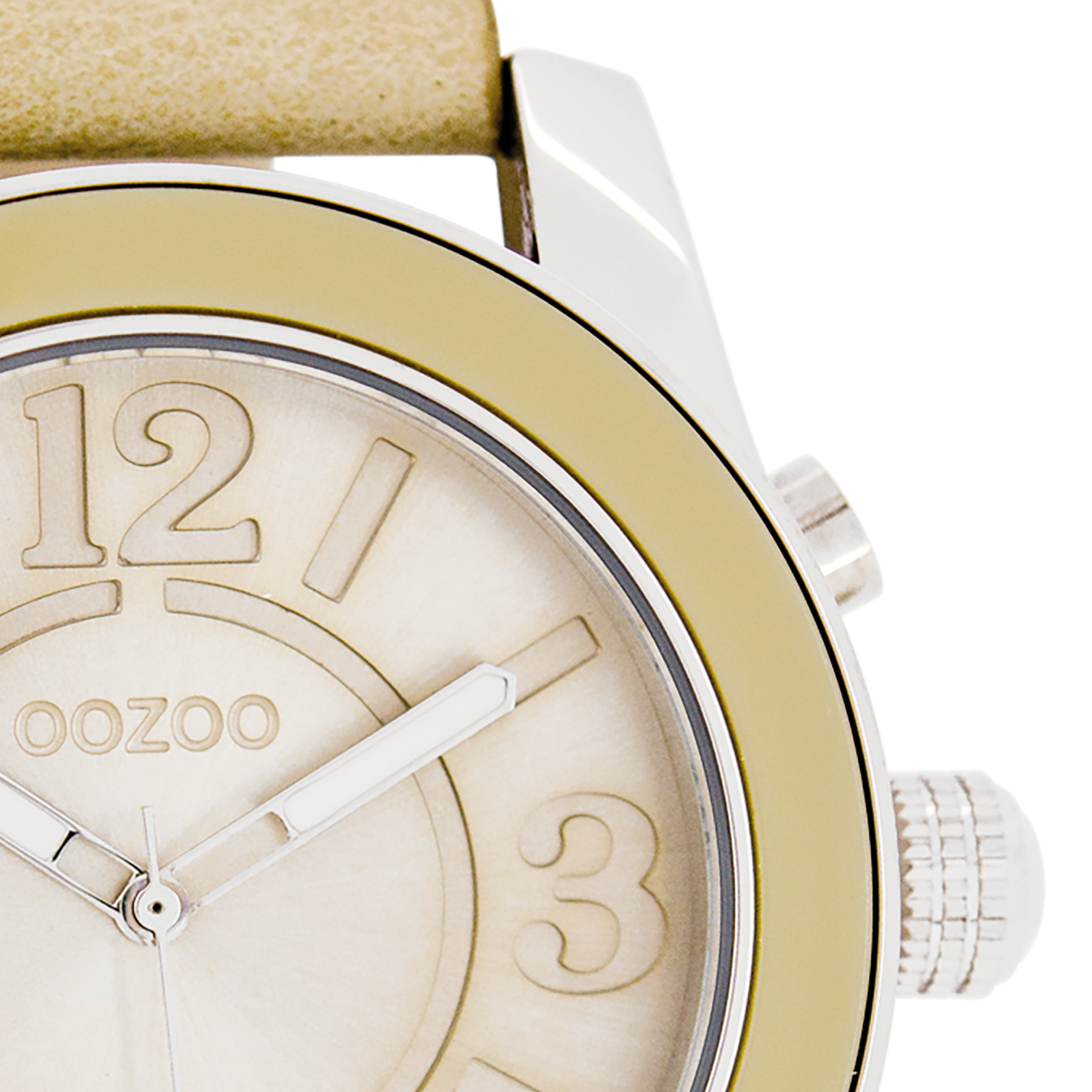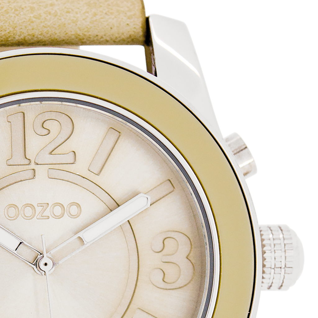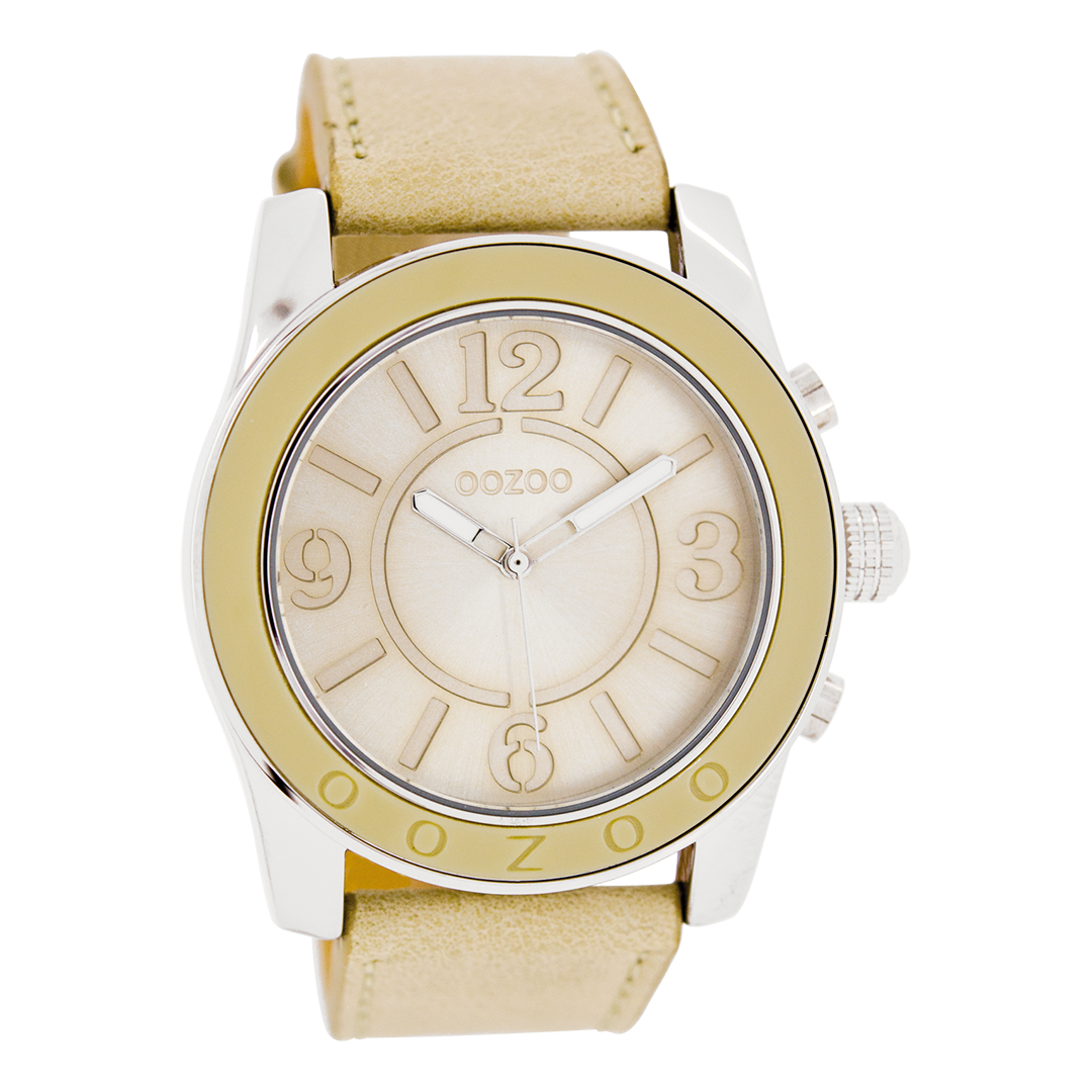 Zilverkleurige OOZOO horloge met zand leren band - C6265