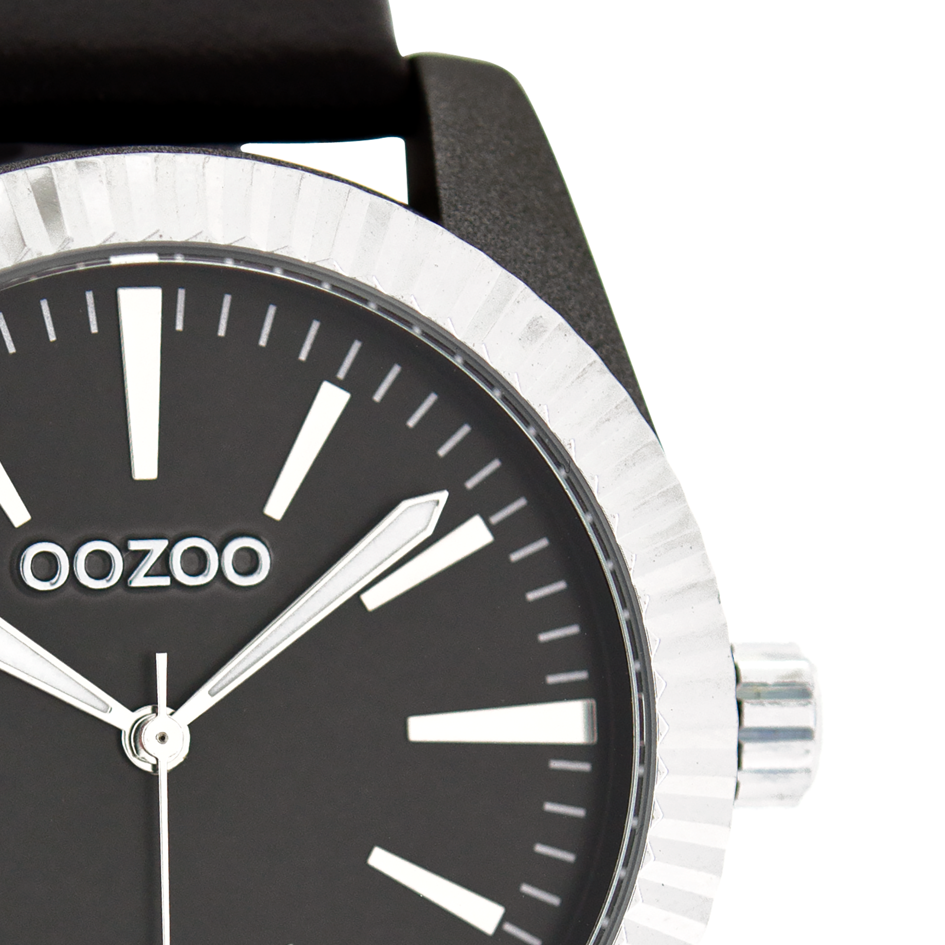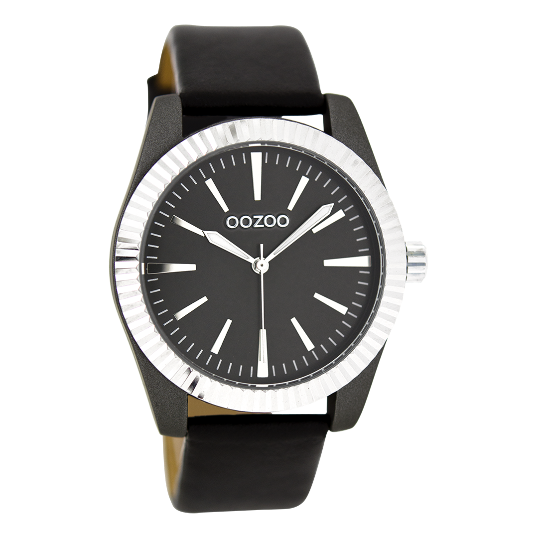 Zilverkleurige OOZOO horloge met zwarte leren band - C6519