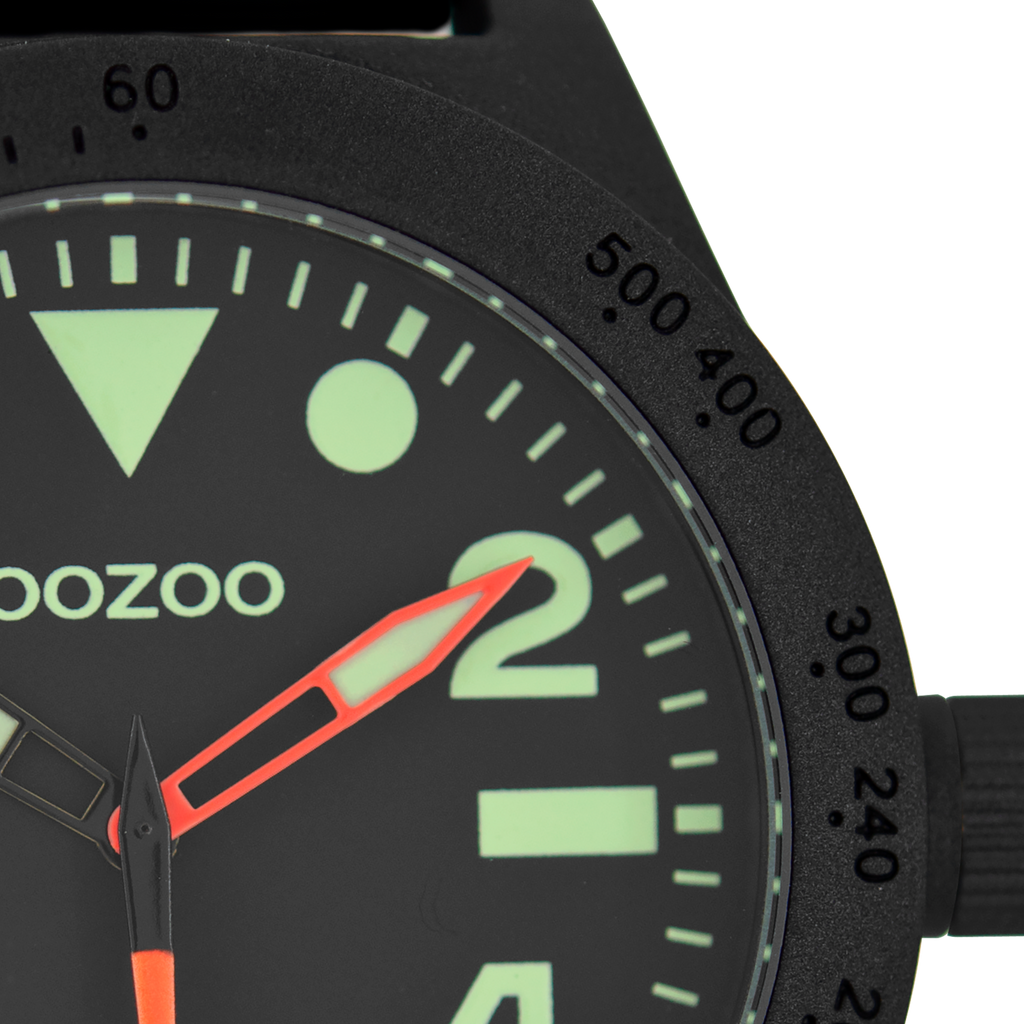 Val op met dit prachtige ronde heren design uit de trendy OOZOO Timepieces collectie. De C6754 heeft een zwarte rubber band en 50 mm zwarte matte horlogekast. Maak een fashion statement met deze zwarte wijzerplaat, glow in the dark stippen en cijfers tijdsaanduidingen en fluo oranje wijzers. Dit horloge is een musthave voor jouw garderobe en heeft een mineraalglas, stainless steel achterplaat en is nikkel-safe. Dit horloge heeft een 2 Japanese uurwerk en wordt gedekt door een garantie van 2 jaar (zie sectie 3 van onze Refund, shipping & warranty policy).