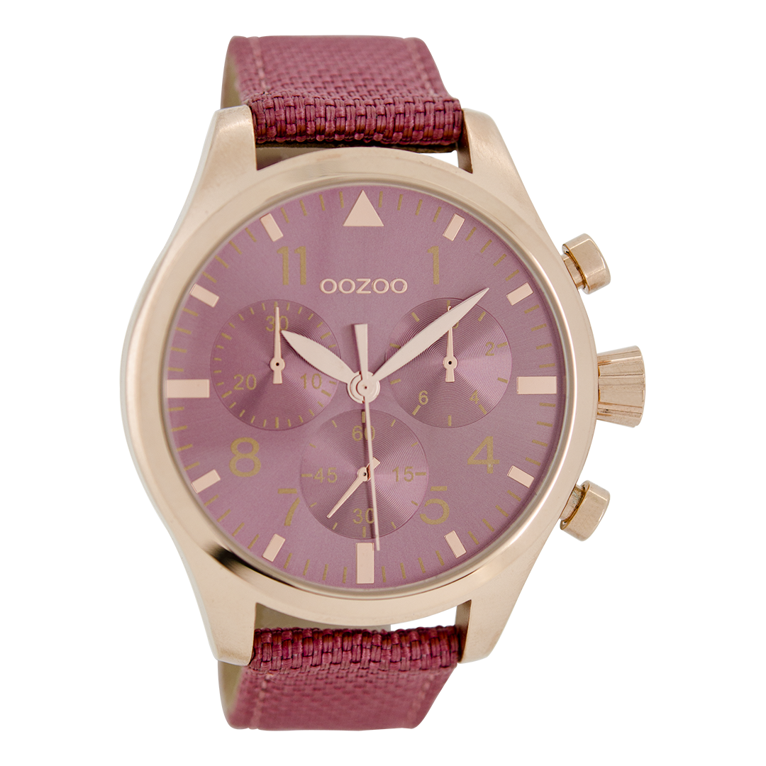 Rosé goudkleurige OOZOO horloge met roze NATO horlogeband - C6796