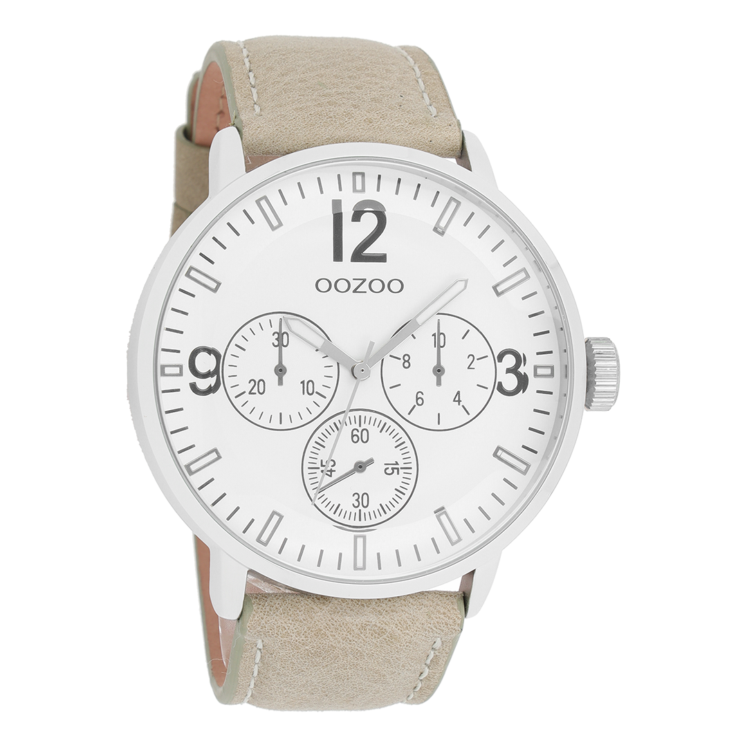 Zilverkleurige OOZOO horloge met beige leren band - C7046