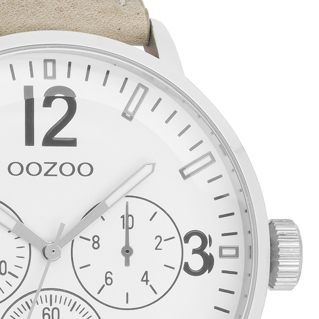 Val op met dit prachtige ronde heren design uit de trendy OOZOO Timepieces collectie. De C7046 heeft een gestikte beige leren band en 48 mm zilverkleurige metalen horlogekast. Maak een fashion statement met deze witte chrono wijzerplaat, zwarte strepen en cijfers tijdsaanduidingen en zilverkleurig/witte wijzers. Dit horloge is een musthave voor jouw garderobe en heeft een mineraalglas, stainless steel achterplaat en is nikkel-safe. Dit horloge heeft een 2 Japanese uurwerk en wordt gedekt door een garantie van 2 jaar (zie sectie 3 van onze Refund, shipping & warranty policy).
