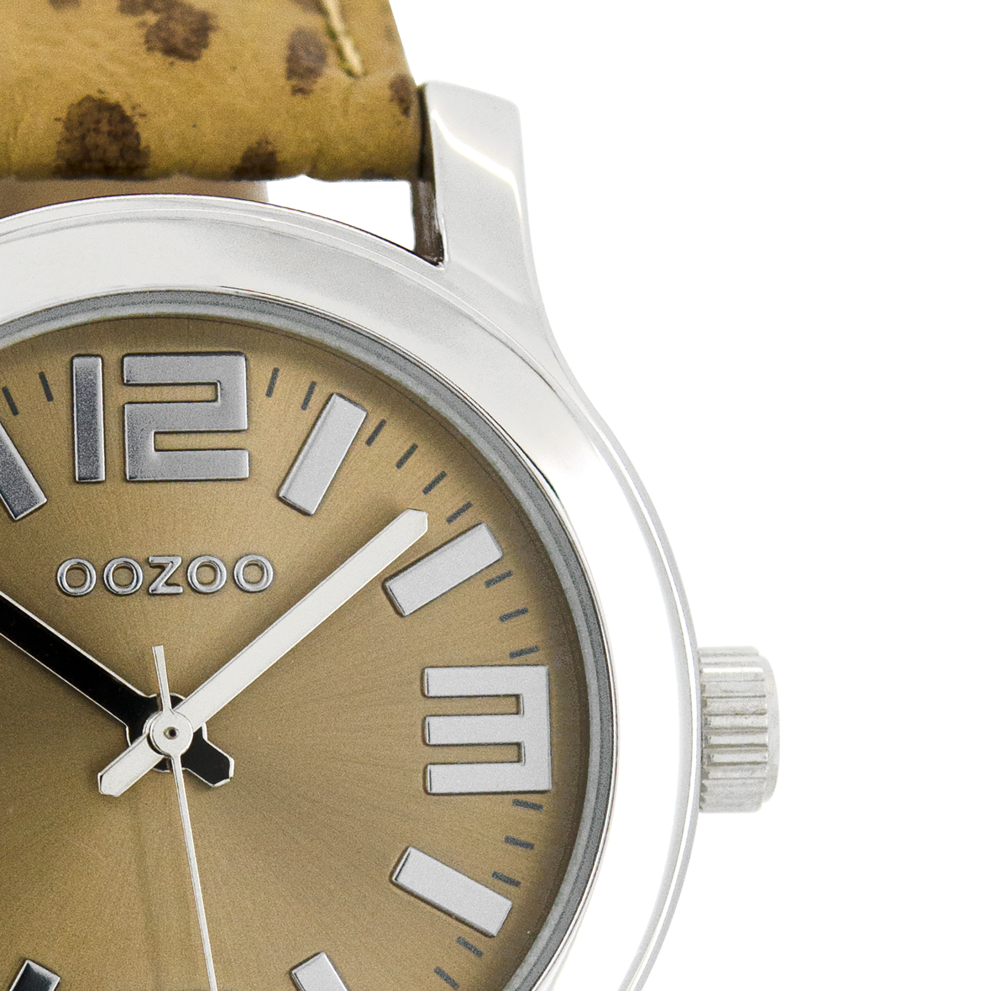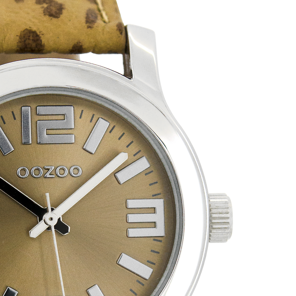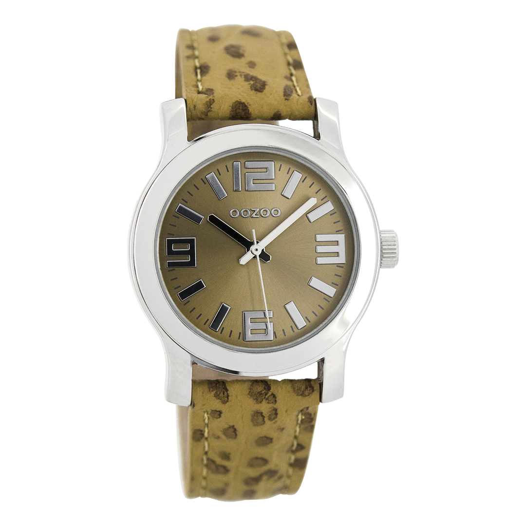 Zilverkleurige OOZOO horloge met zand leren band - C7125