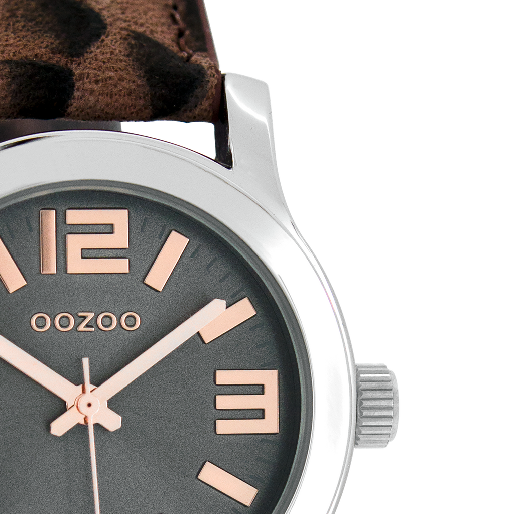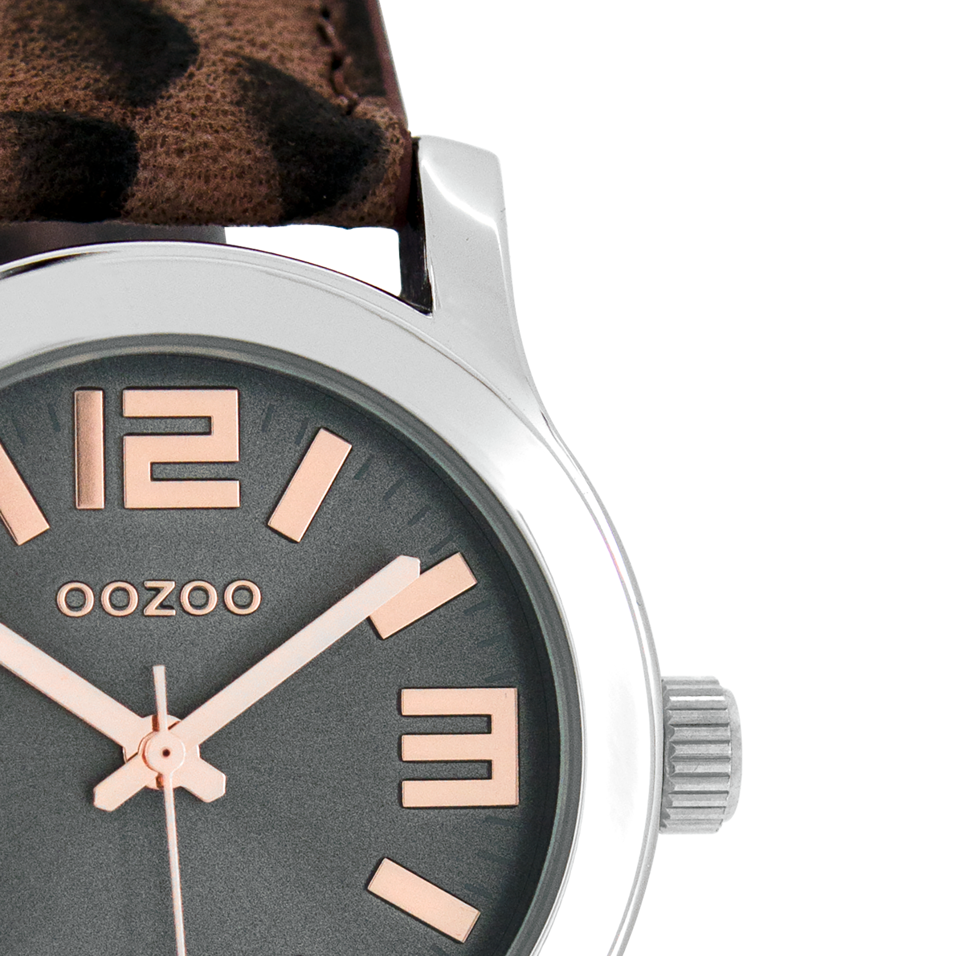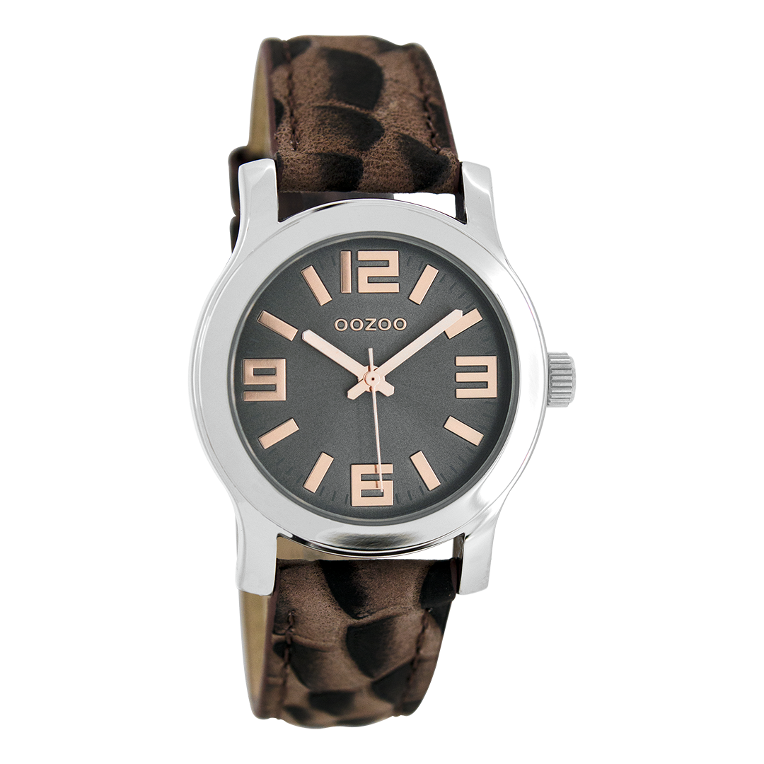 Zilverkleurige OOZOO horloge met bruine leren band - C7129