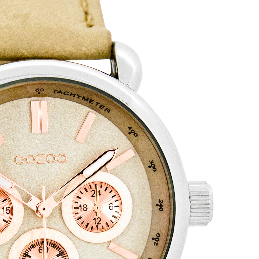 Zilverkleurige OOZOO horloge met zand leren band - C7135