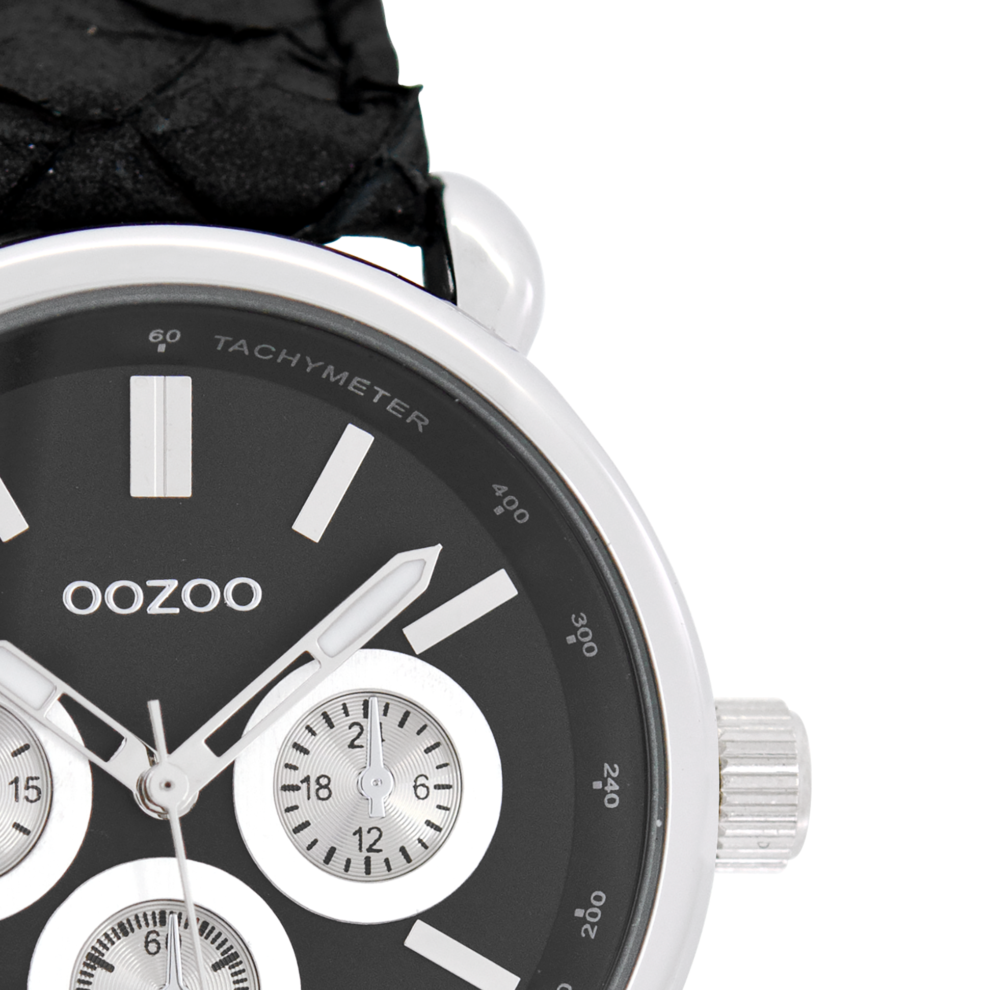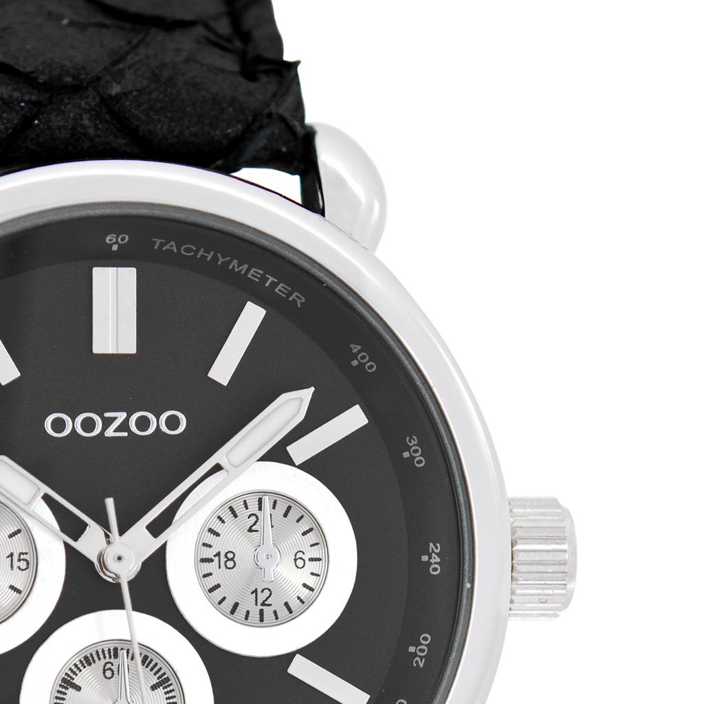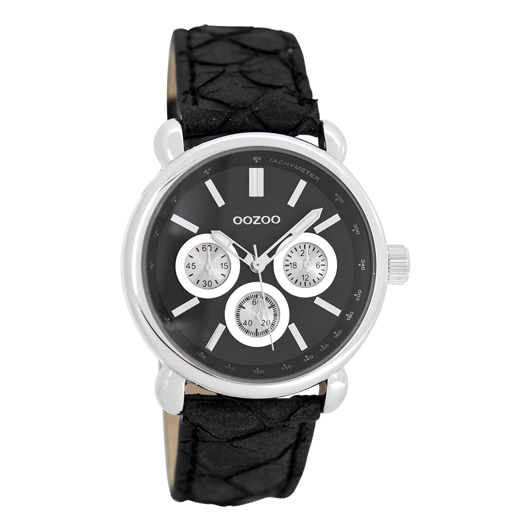 Zilverkleurige OOZOO horloge met zwarte leren band - C7139